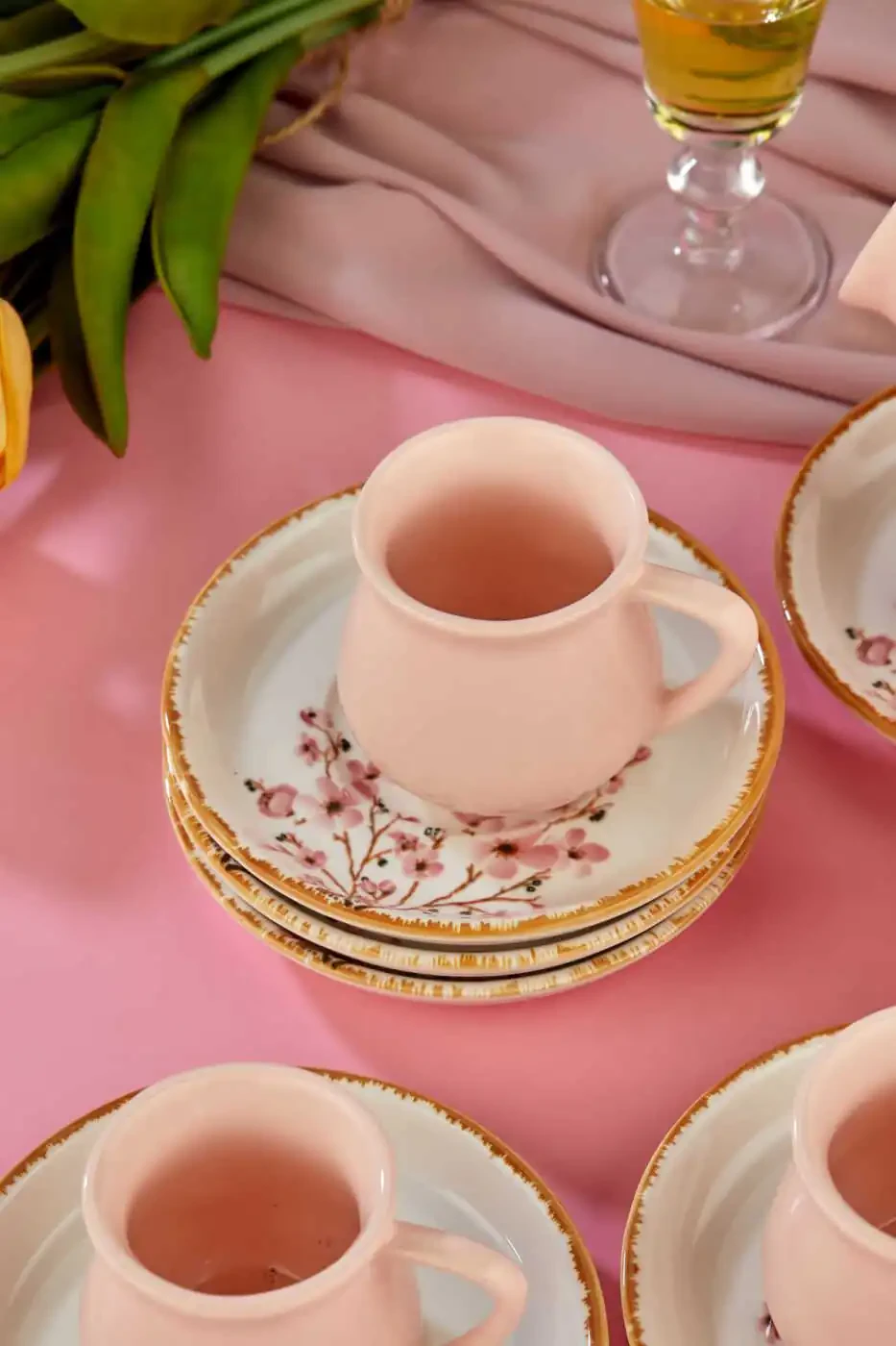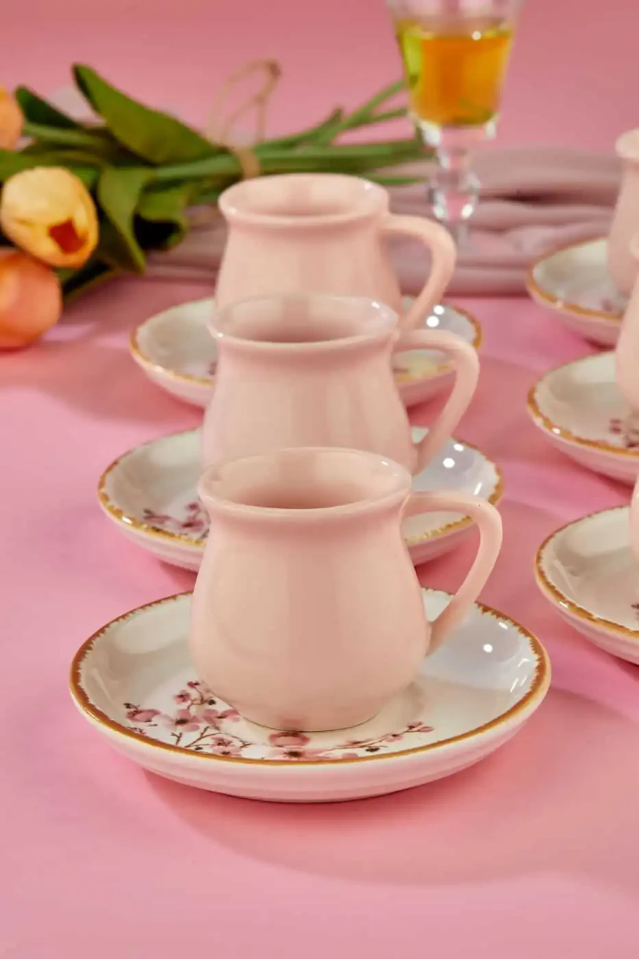 The Sakura Flower Pink 12 Piece Luxury Ceramic Coffee Cup Set will add color and elegance to your table while also being a perfect gift option for special occasions.