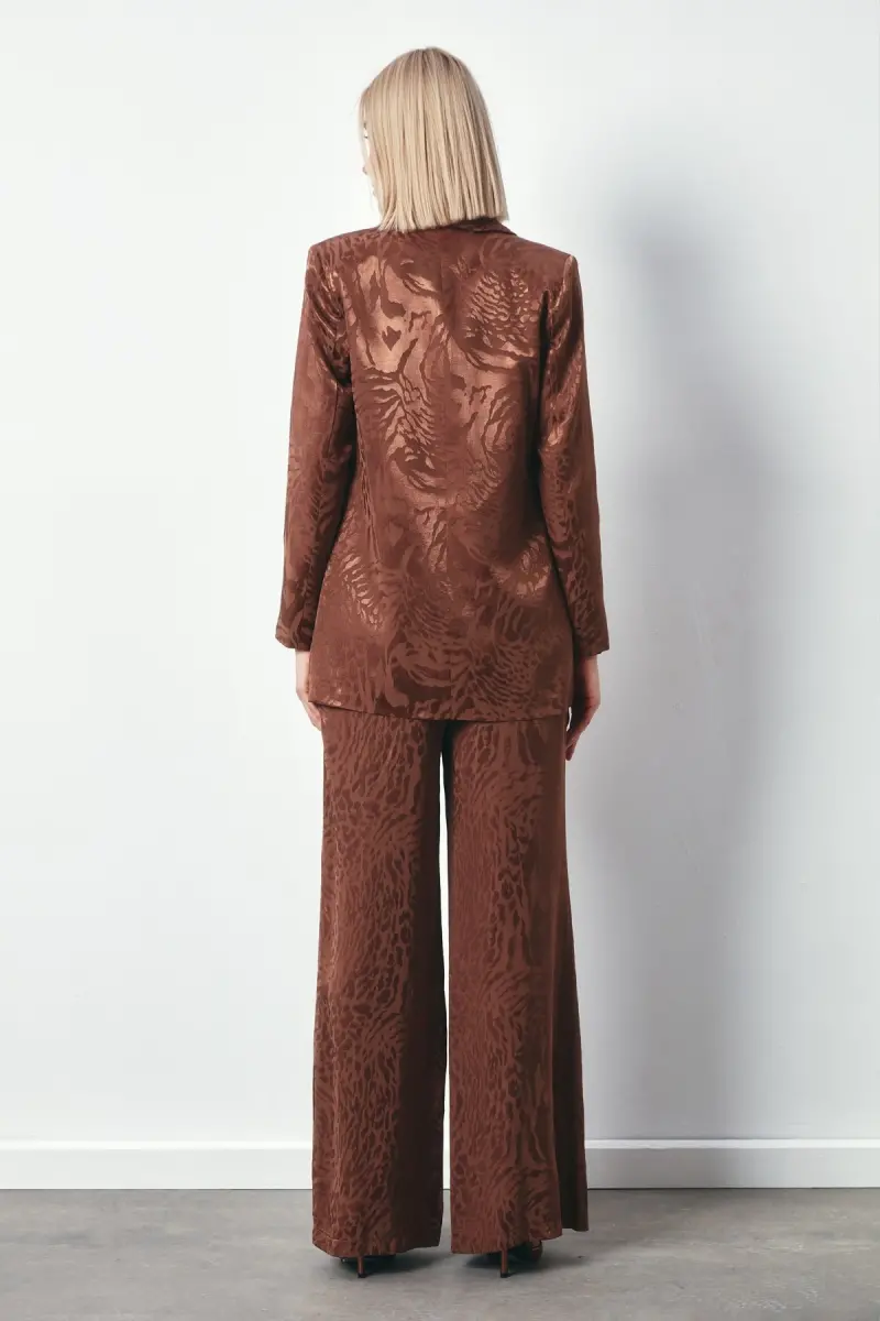 Şıklığı ve zarafeti bir araya getiren Şal Yaka Desenli Ceket, gardırobunuzun vazgeçilmez parçalarından biri olmaya hazır. Koyu kahverengi rengi ile her tarza uyum sağlayan ceket, şal yakası ve zarif desenleriyle özgün bir stil yaratmanıza yardımcı olur. Kaliteli kumaştan üretilen ceket, rahatlığı ve şıklığı aynı anda sunar. Günlük kullanım için ideal olan bu ceket, özel davetlerde de göz alıcı bir seçenek olabilir.