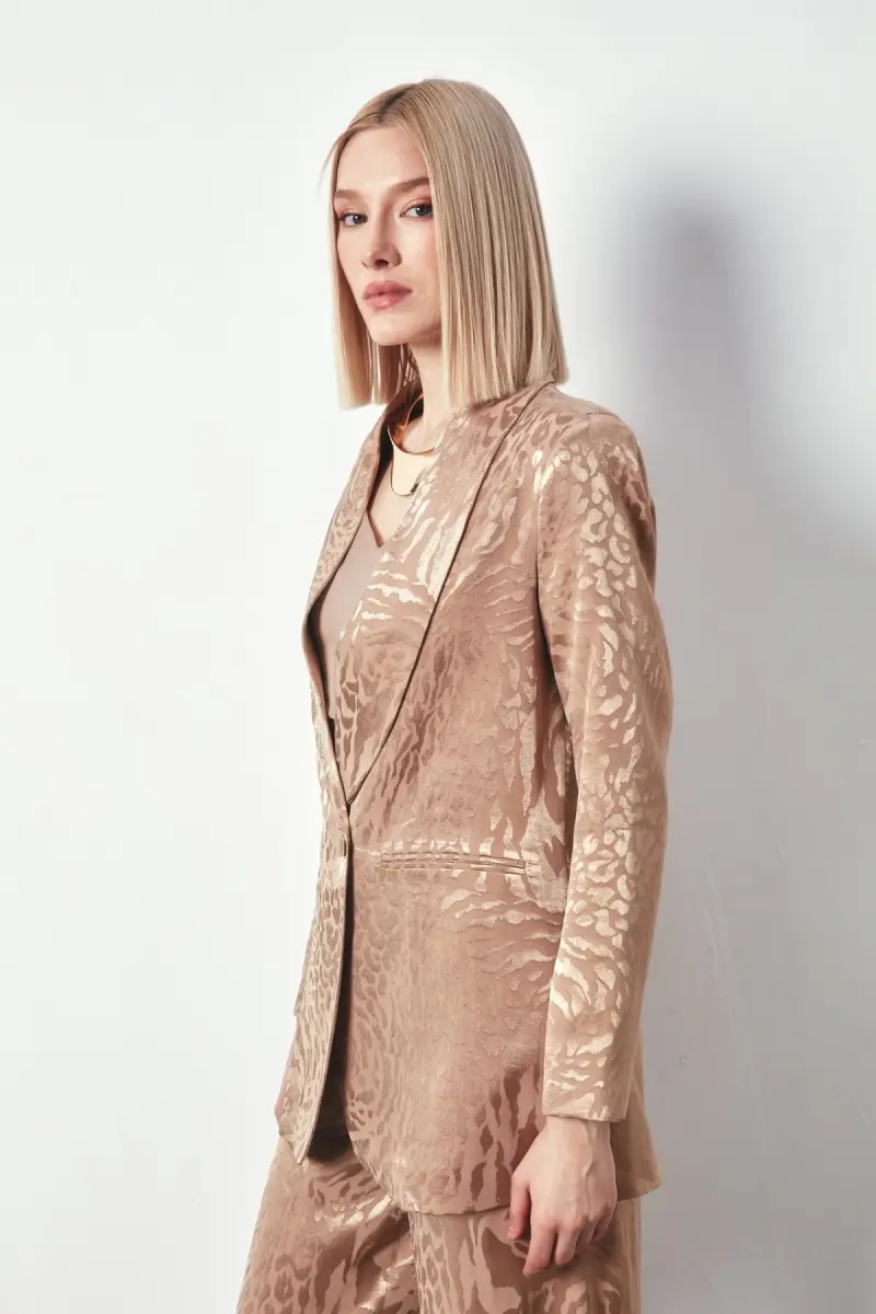 Şal Yaka Desenli Ceket - VİZON | Şık ve Zarif Bir Görünüm