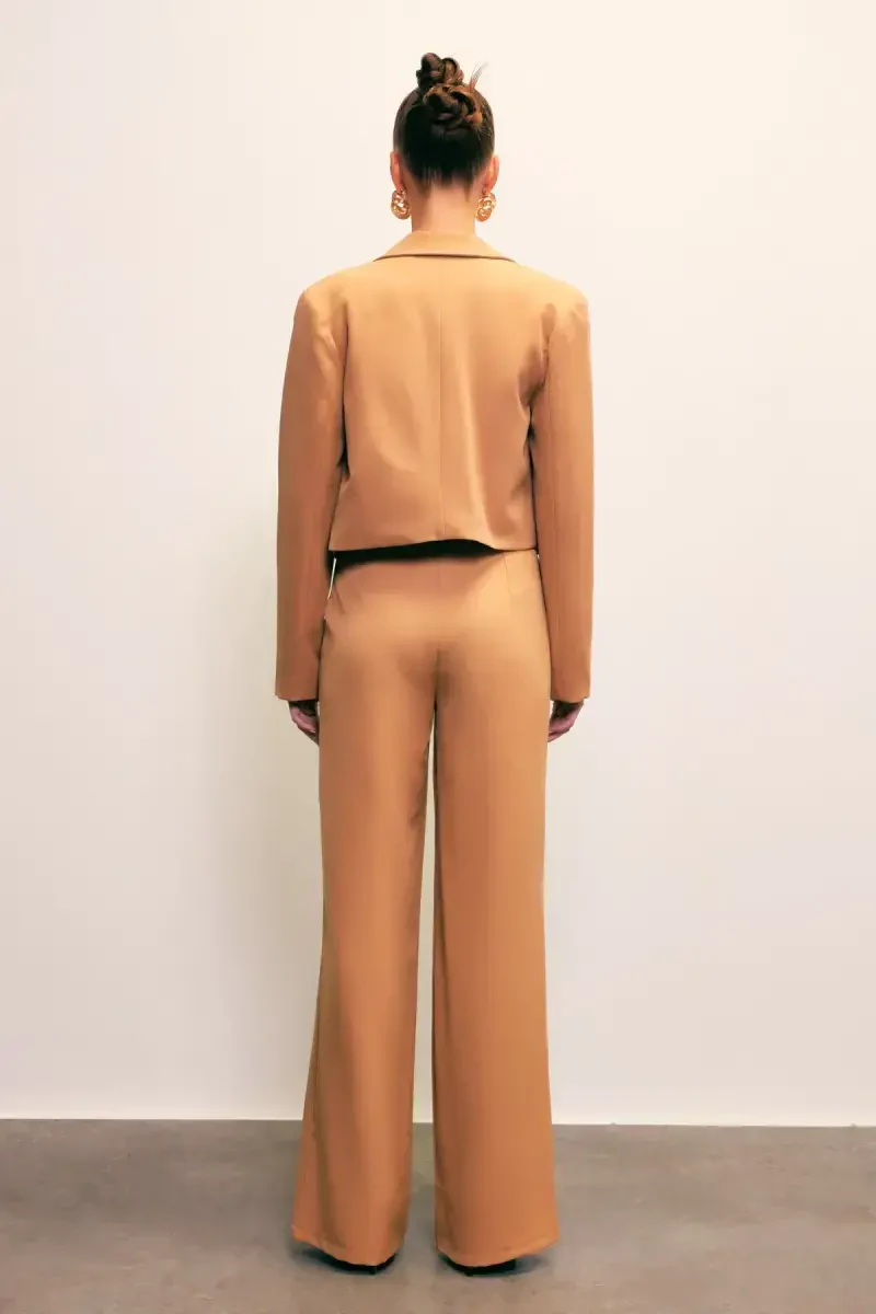 Şıklığı ve rahatlığı bir araya getiren Şal Yaka Kısa Ceket, gardırobunuzun vazgeçilmez parçalarından biri olacak. Zarif şal yaka detayı ve kısa kesim, modern ve stil sahibi bir görünüm sunar. Camel rengi, her tarza uyum sağlayarak şıklığınızı tamamlamanıza olanak tanır.