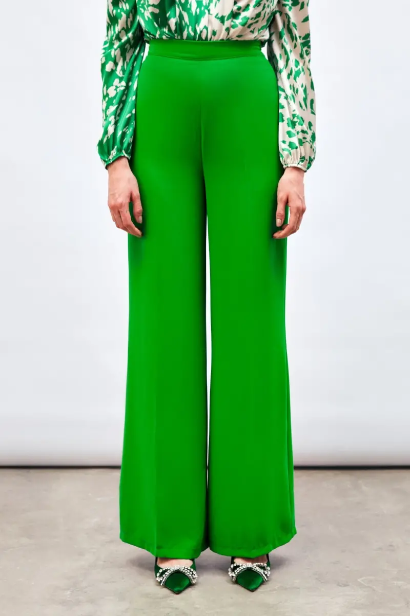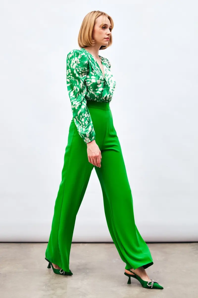 Yeşil rengi ile stilinize canlılık katacak Salaş Krep Pantolon, farklı üstlerle kombinlenebilir. Tişörtlerle günlük bir şıklık yakalayabilir, bluzlarla daha sofistike bir görünüm elde edebilirsiniz. Spor ayakkabılarla casual bir tarza, topuklu ayakkabılarla ise daha şık bir stile ulaşabilirsiniz.