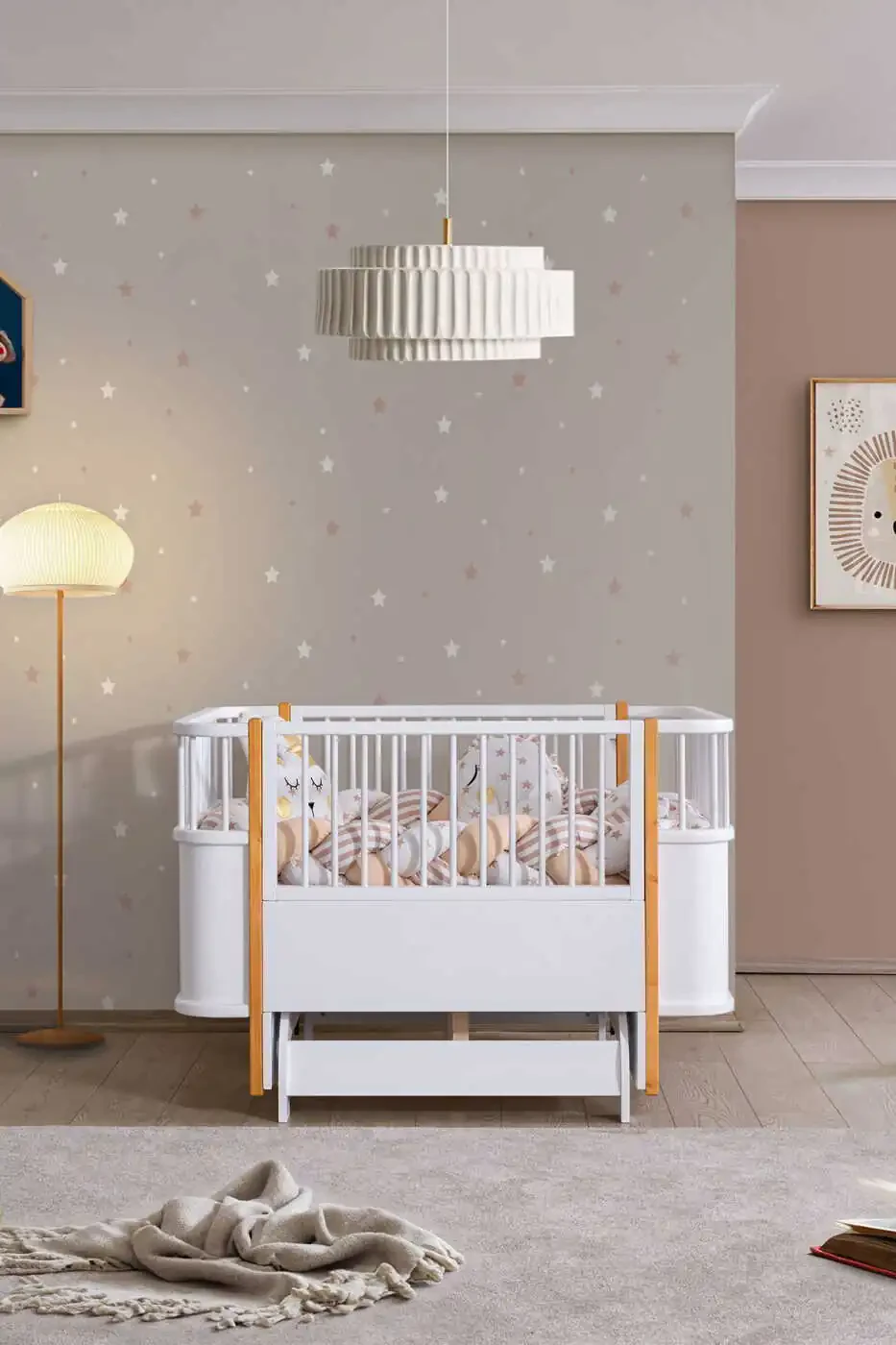 Bella Büyüyen Beşik, modern ve fonksiyonel tasarımıyla bebek odalarının vazgeçilmez bir parçası olmaya aday. Bu beşik, bebeğinizin doğumundan itibaren uzun yıllar boyunca kullanabileceğiniz bir yatırım niteliği taşır. Yüksek kaliteli MDF malzemeden üretilmiş olan beşik, dayanıklılığı ve uzun ömrü ile öne çıkar. Bebeğinizin sağlığına zarar verecek hiçbir madde içermeyen, çevre dostu boyalarla renklendirilmiştir. Sallanma mekanizması, bebeğinizin rahatlamasına ve kolayca uykuya dalmasına yardımcı olurken, sallanma özelliği istenildiğinde sabitlenebilir. Beşik, büyüyebilme özelliği sayesinde, çocuğunuzun büyüme sürecinde ona uygun bir yatak haline dönüşebilir. Bu sayede, yeni bir yatak alma ihtiyacını ortadan kaldırarak, uzun vadede tasarruf etmenizi sağlar. 90x120 cm boyutlarındaki iç yatak alanı, bebeğinizin rahatça hareket edebileceği geniş bir alan sunar. Beşiğin yan korkulukları, bebeğinizin güvenliğini sağlarken, kolayca sökülüp takılabilme özelliği sayesinde, çocuğunuz büyüdüğünde korkulukları çıkararak, beşiği daha büyük bir yatak haline getirebilirsiniz. Bella Büyüyen Beşik, şık tasarımı ve kullanışlı özellikleriyle, hem sizin hem de bebeğinizin hayatını kolaylaştıracak bir üründür. Beşiğin montajı oldukça kolaydır ve gerekli tüm parçalar ve talimatlar ürünle birlikte gelir. Beşik, sadece bir uyku alanı değil, aynı zamanda bebeğinizin oyun oynayabileceği, dinlenebileceği ve kendini güvende hissedebileceği bir alan yaratır. Bella Büyüyen Beşik ile bebeğinizin odasına sıcaklık ve şıklık katarken, onun sağlıklı ve mutlu bir şekilde büyümesine katkıda bulunabilirsiniz. Beşiğin tasarımı, sadece estetik değil, aynı zamanda fonksiyonellik de gözetilerek yapılmıştır. Beşiğin altında bulunan geniş depolama alanı, bebeğinizin eşyalarını düzenli bir şekilde saklamanıza olanak tanır. Bu sayede, bebek odasında daha fazla alan yaratabilir ve eşyalarınıza kolayca ulaşabilirsiniz. Bella Büyüyen Beşik, bebeğinizin ve sizin için en iyi uyku deneyimini sunmak için tasarlanmıştır. Bebeğinizin rahatı ve güvenliği her zaman önceliğimizdir. Bu nedenle, beşiğimiz en yüksek güvenlik standartlarına uygun olarak üretilmiştir. Bebeğinizin sağlıklı ve mutlu bir şekilde büyümesi için Bella Büyüyen Beşik'i tercih edin.