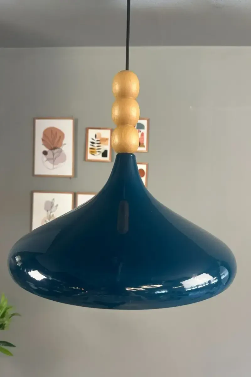 Tungi moviy yog'och boncukli bitta qandil | Mehmonxona, oshxona, ofis yoritgichi