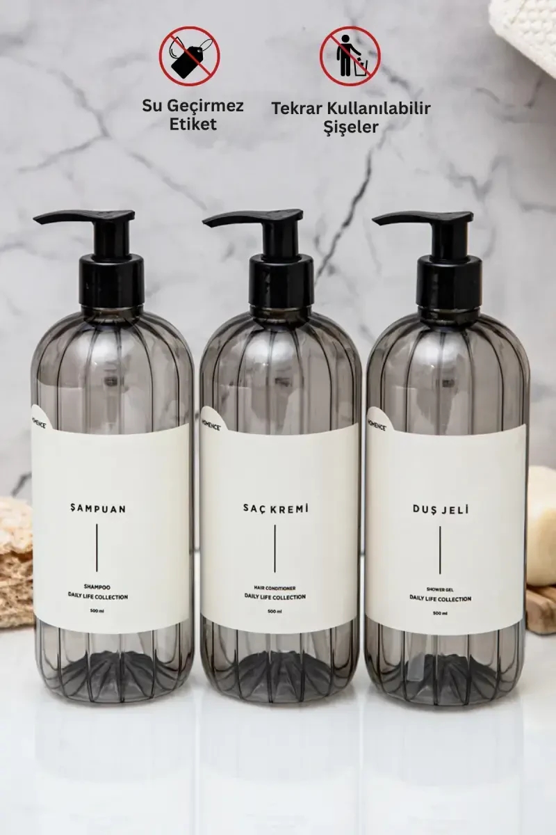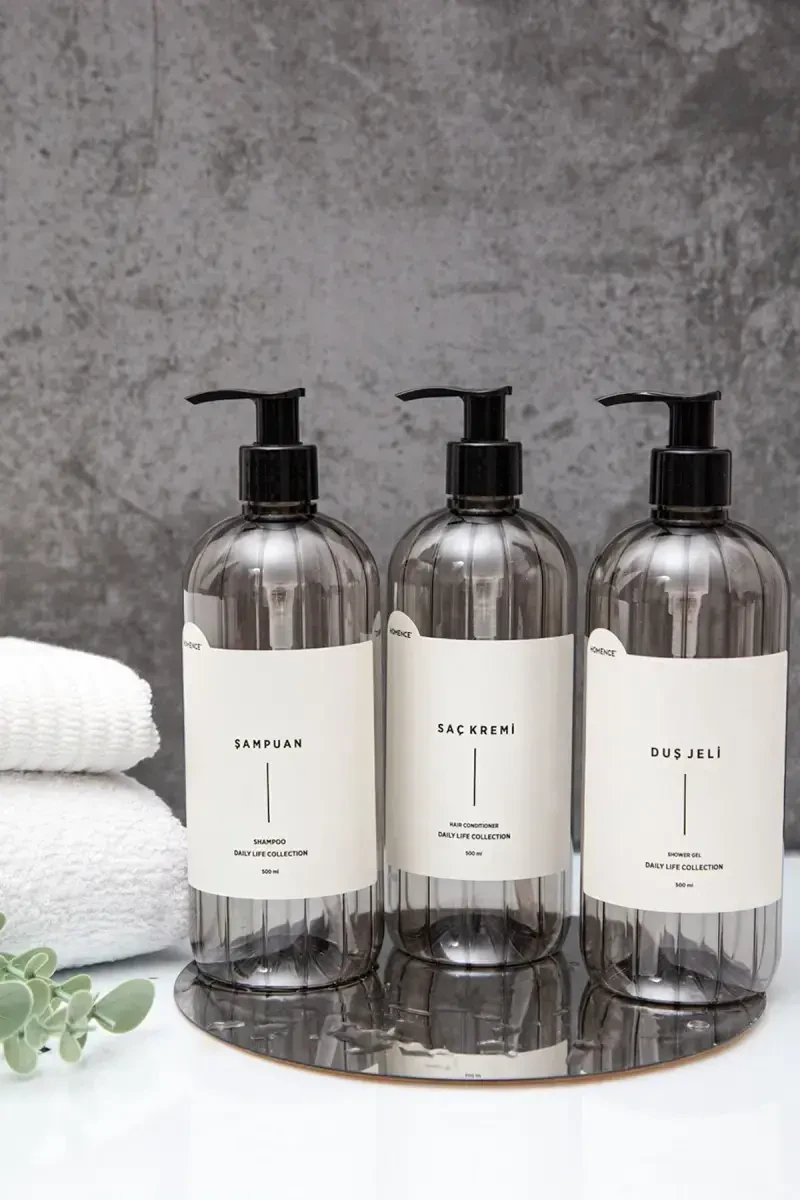 Ҳомэнс томонидан тақдим этилган, ҳаммомни замонавий ва тартибли қилиш учун мўлжалланган шампунь, душ гели ва соч ниқоби ёзувли пластик шишали ҳаммом тўплами билан танишинг! Бу 3 қисмли тўплам ҳар бири 500 мл ҳажмли, замонавий кулранг шаффоф шишалардан иборат бўлиб, амалий помпали механизми туфайли ҳам замонавий кўриниш беради, ҳам маҳсулотлардан тежамкор ва осон фойдаланиш имкониятини беради. Узоқ муддатли фойдаланиш учун мўлжалланган бу катта ҳажмли шишалар тез-тез тўлдиришга бўлган эҳтиёжни йўқ қилади. Алоҳида шампунь, соч ниқоби ва душ гели ёзувлари туфайли маҳсулотларингизни осонлик билан ажратиб олишингиз ва чалкашишсиз фойдаланишингиз мумкин. Намликка чидамли махсус ёзувлар узоқ муддатли фойдаланишда ҳам ўз сифатини сақлаб, вақтингизни тежайди. Тўпламда учта шиша учун ҳам замонавий қора рангли помпадаги бошқаргичлар мавжуд. Қўлда ювиш орқали маҳсулотларингизнинг умрини узайтиришингиз ва узоқ муддатли гигиенани таъминлашингиз мумкин. 100 дан ортиқ захира билан акция нархида тақдим этилаётган бу амалий ва замонавий ҳаммом тўпламини қўлдан бой берманг!