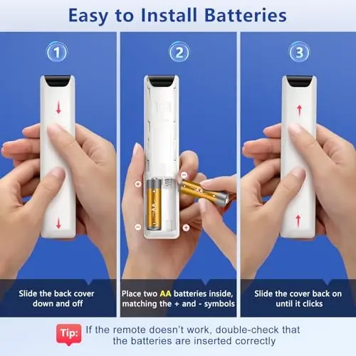 Pult 2 ta AA ishqoriy batareyasi bilan ishlaydi (batareyalar kiritilmagan). Ulanish jarayonida TV ekranida "Pairing Complete" xabarini ko'rganingizga ishonch hosil qiling. Pultning to'g'ri ishlashi uchun TVning pult sensoriga to'g'ri yo'naltirilganligiga ishonch hosil qiling. Ushbu mahsulot Samsung tomonidan ishlab chiqarilmagan; ammo yuqori sifatli materiallardan ishlab chiqarilgan va asl pultning barcha funktsiyalarini to'liq bajarish uchun mo'ljallangan. Ovozli qidiruv xususiyatidan foydalanish uchun pultning TV bilan muvaffaqiyatli ulangan bo'lishi kerak.