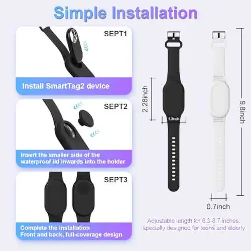 Bolalar va keksalar uchun mo'ljallangan, yumshoq silikon bilaguchga ega Samsung Galaxy SmartTag 2 ulagichi, xavfsizlik va qulaylikni birlashtiradi. Ushbu zamonaviy va amaliy bilaguch, SmartTag 2-ni xavfsiz tarzda olib yurishingizga imkon beradi, shuning uchun siz doimo mol-mulkingizni kuzatib borishingiz mumkin.