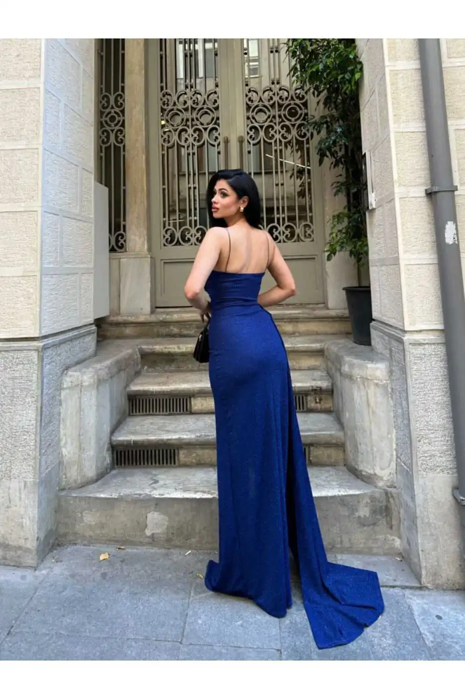 Познакомьтесь с этим великолепным вечерним платьем цвета индиго с тонкими бретелями из сияющей ткани Фукуро, которое притянет все взгляды на вас в особые дни, предлагая сочетание элегантности и блеска. Вы станете самой яркой звездой ночи. Это платье сочетает в себе благородство цвета индиго с уникальной текстурой сияющей ткани Фукуро, создавая неповторимый дизайн. Своеобразная структура ткани Фукуро, сливаясь с блестками, излучает завораживающее сияние при каждом шаге и будто танцует со световыми переливами, отражающимися под разными углами при движении. Качество и драпировка ткани безупречно сидят по фигуре, создавая изящный силуэт. Тонкие, элегантные бретели деликатно подчеркивают плечи и декольте, придавая современный и утонченный вид. Крой платья позволяет свободно двигаться и при этом не уступает в вечерней элегантности. Свадьбы, помолвки, особые приемы, выпускные балы или незабываемая новогодняя вечеринка... В какой бы особый день вы ни надели его, в этом платье вы почувствуете себя принцессой. Яркость цвета индиго в сочетании с блеском пайеток создает настоящее визуальное пиршество, которое сделает вас самой заметной персоной вечера. Благодаря дышащей структуре ткани вы не потеряете комфорта даже при длительном использовании. Платье, которое не просвечивает и обеспечивает удобное ношение благодаря внутренней подкладке, продумано до мелочей. Это вечернее платье способно создать максимальный эффект даже с минимумом аксессуаров. Вы можете создать свой собственный стиль, сочетая его с простыми туфлями на каблуке и элегантным клатчем. Это платье, сочетающее в себе современный дизайн и классические детали вечерних нарядов, претендует стать одним из самых особенных предметов вашего гардероба. Подарив это уникальное платье себе или своим близким, вы сделаете особые моменты еще более незабываемыми. Благодаря качественной работе и привлекательному дизайну это платье станет жемчужиной вашей коллекции вечерних нарядов. Выделитесь в любом обществе с этим вневременным изделием, подходящим для любого возраста и стиля. Это не просто платье, это символ элегантности, уверенности и сияния. Энергия цвета индиго и динамичность сияющей ткани заставят вас почувствовать себя особенной. Помните, правильная одежда может полностью изменить ваше настроение и осанку. Будьте готовы стать звездой ночи в этом платье!