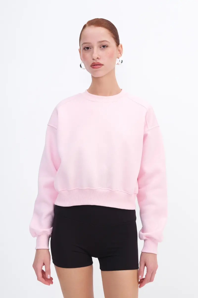 Şardonlu Basic Sweatshirt S3812-İ13-Pembe