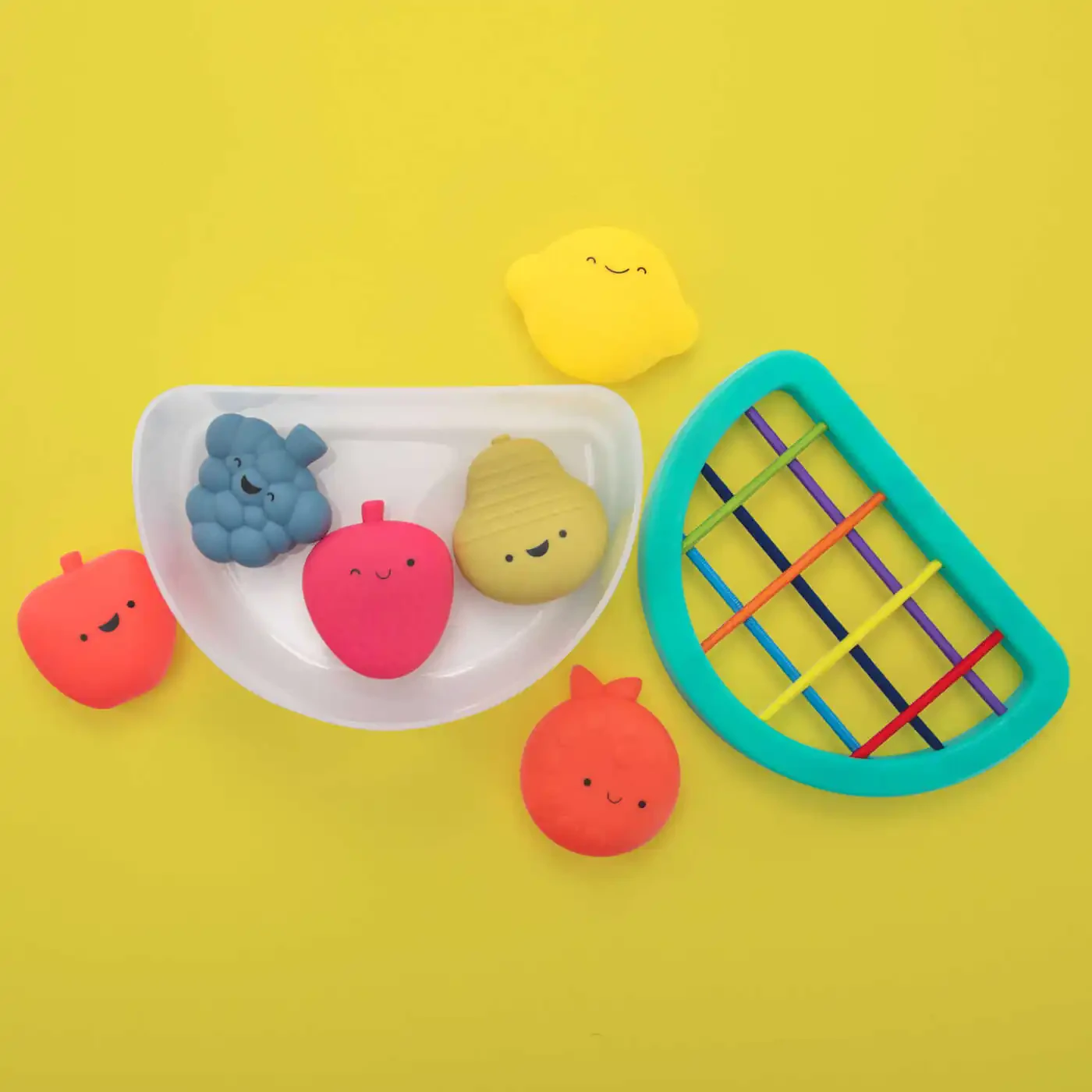 Sassy Fruit Fun Fill & Spill STEM o'yinchog'i chaqalog'ingiz uchun ajoyib sovg'a tanlovidir. Tug'ilgan kunlar, bayramlar yoki maxsus kunlar uchun ideal sovg'a bo'lishi mumkin. O'yinchoqni tozalash oson va nam mato bilan artib olish mumkin. Chaqalog'ingiz xavfsizligi uchun o'yinchoqdan foydalanishdan oldin ko'rsatmalarni diqqat bilan o'qing.