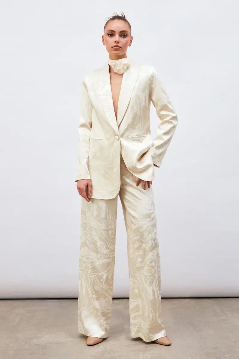 Saten Desenli Salaş Pantolon - Ekru | Şık ve Rahat
