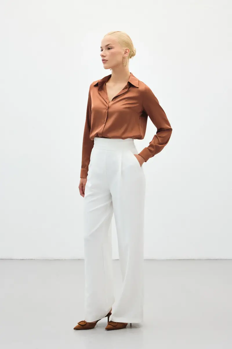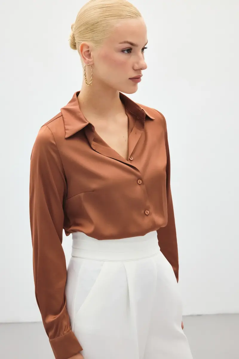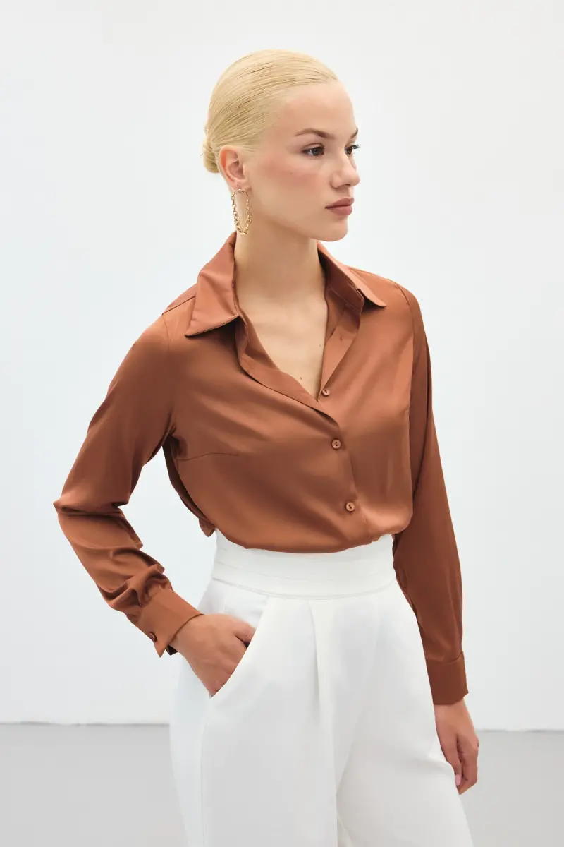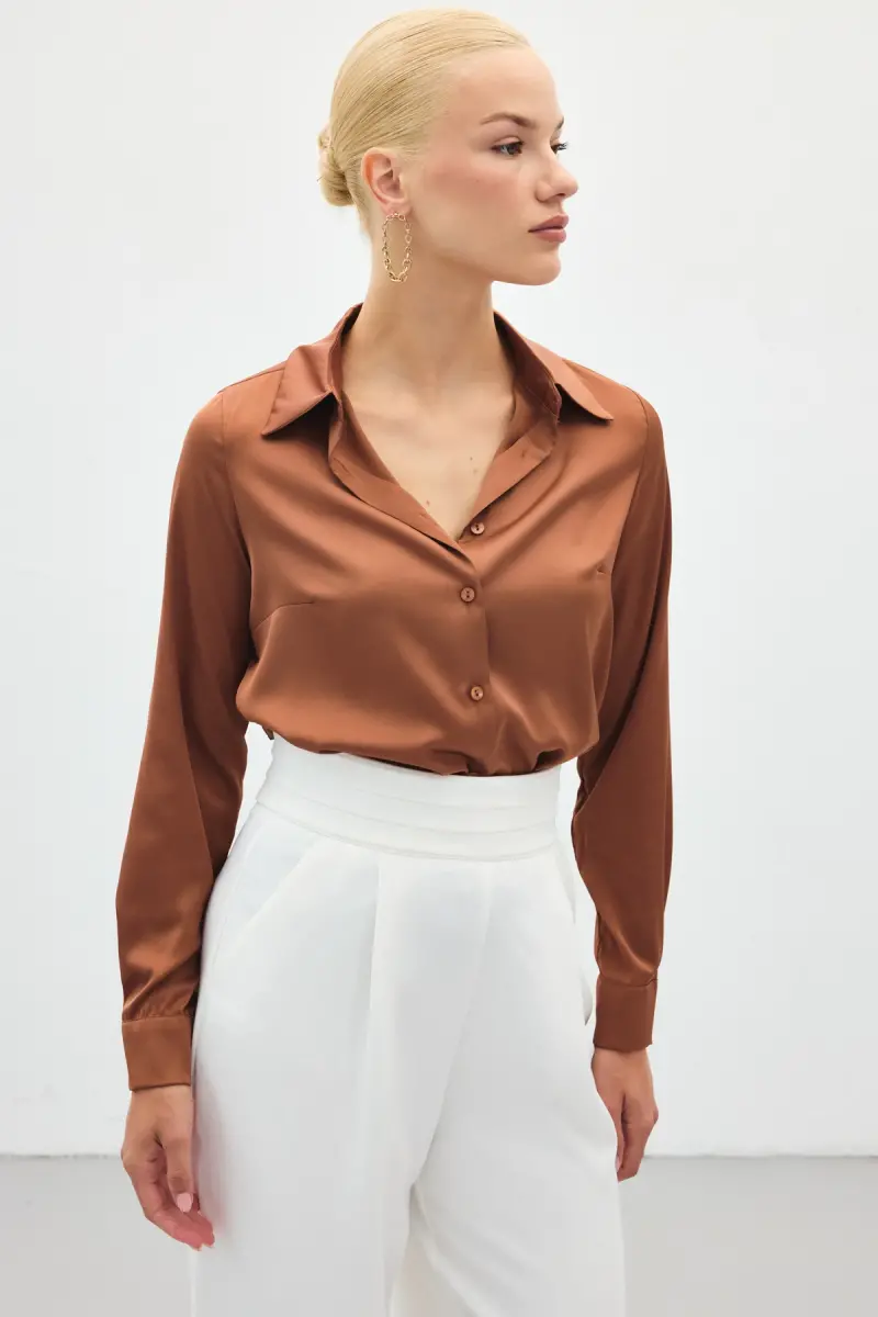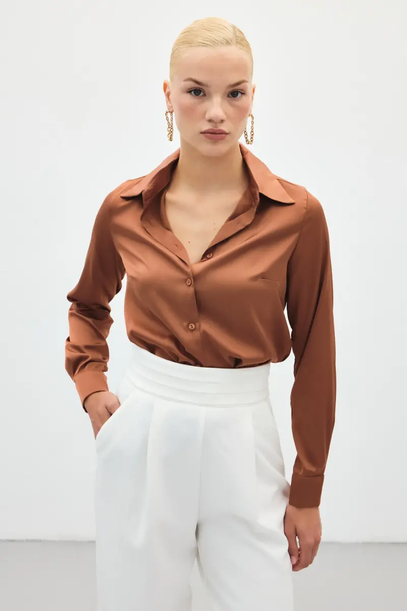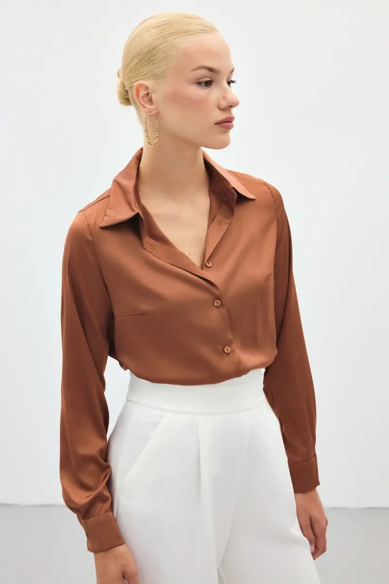 Saten Gömlek - Kahve-Kahve