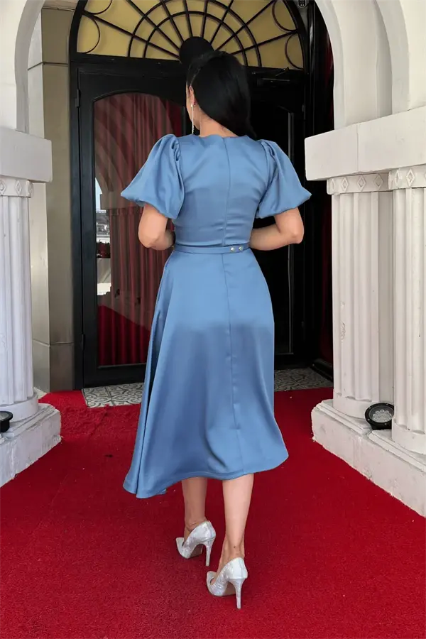 Experience elegance and style with the Satin Fabric Belt Detailed Midi Dress - INDIGO BLUE. This special design dress dazzles with the luxurious texture of satin fabric and the deep tone of indigo blue. This midi dress, which will allow you to attract attention in any environment, will accompany you in a wide range from special invitations to daily use. The most striking feature of the dress is the stylish belt detail on the waist. This belt helps you create a more elegant silhouette by emphasizing your body lines. The fabric of the belt provides a perfect harmony with the satin texture of the dress, offering a holistic look. This midi-length dress, which catches both a modern and classic look, appeals to all ages and styles. The absence of lining inside the dress offers a light and comfortable use. It minimizes the problem of sweating, especially in hot weather, and allows you to feel comfortable all day long. The bustier detail in the product provides extra support and shape, allowing you to achieve a more pleasant appearance. Thanks to the bustier, you can move freely without having to wear a bra. This dress is a candidate to be one of the indispensable pieces of your wardrobe. Whether you make a stylish combination with heels or create a more comfortable style with sandals, you will reflect your style in the best way in any case. Make a difference in both your special days and daily life with the Satin Fabric Belt Detailed Midi Dress - INDIGO BLUE. Remember, elegance is hidden in the details and this dress offers you all the details you need. You will feel special every moment you wear this dress with the fluidity of the fabric, the vibrancy of the color and the elegance of the design. Satin Fabric Belt Detailed Midi Dress - INDIGO BLUE is the perfect choice that combines elegance and comfort. Whether you attend a special invitation or have a pleasant dinner with your friends, you will always be at your best with this dress. Pamper yourself and enrich your wardrobe with this unique piece.
