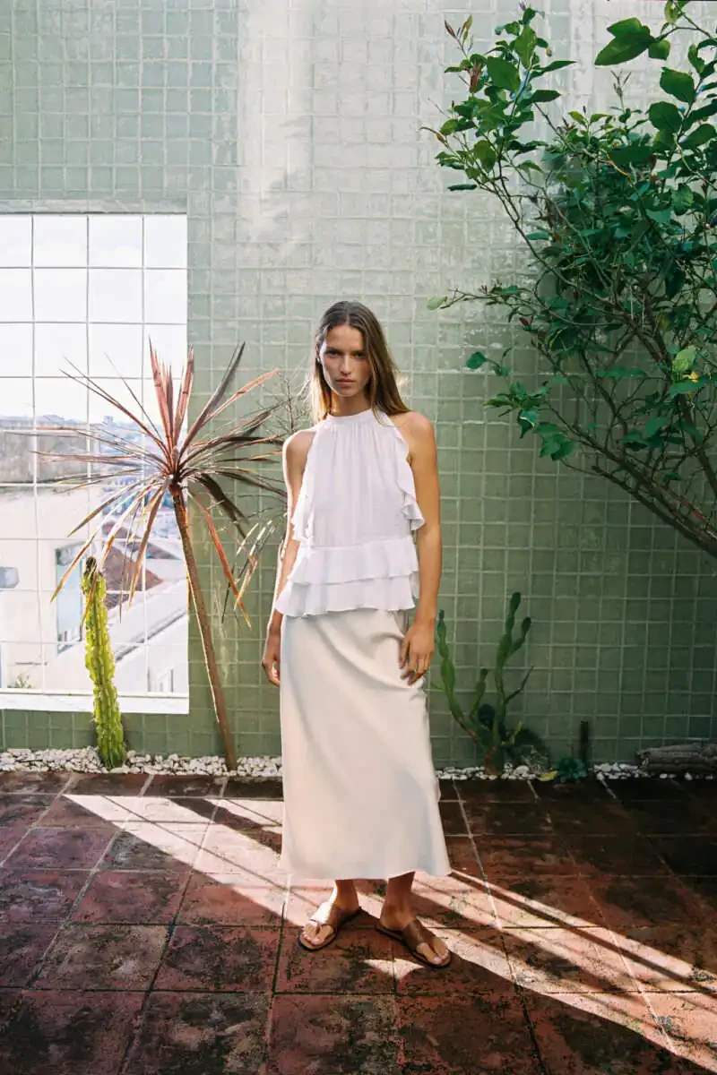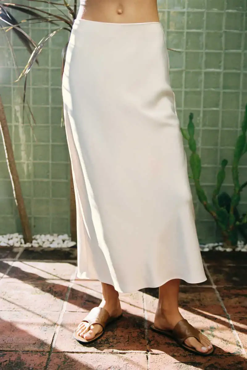 Satin Surface Midi Skirt - Ecru, is a candidate to be one of the indispensable pieces of your wardrobe! This elegant and stylish skirt is a perfect option for both daily use and special occasions. Its soft and flowing satin fabric leaves you with a light and comfortable feeling, while its skirt length offers a modern and sophisticated look. Thanks to its elastic waistband detail, it provides comfort all day long and adapts to your body lines in a pleasant way. The skirt offers a timeless elegance with its ecru color and can be easily combined with tops in different colors. Whether you attend a special event with a stylish blouse or spend a relaxing weekend with a casual t-shirt, this skirt will complement your style in any situation. Satin Surface Midi Skirt - Ecru is an ideal choice for women who want both comfort and elegance together. Thanks to the quality and workmanship of its fabric, it will be your favorite piece in your wardrobe for many years. You will always feel special and stylish with this skirt. This skirt, which is a must-have in your wardrobe, allows you to reflect your style with different combinations. This skirt, which can adapt to both classic and modern styles, is one of the essential pieces that every woman should have in her wardrobe. Whether you create a stylish look with high heels or a more casual style with sneakers, this skirt will complement any combination. The shine and fluidity of the satin fabric add a special elegance to the skirt, while the midi length offers a style suitable for any environment. The elastic waist detail provides comfort all day long, while the fit of the skirt on the body is quite pleasant and elegant. You will always look stylish and confident with this skirt. Satin Surface Midi Skirt - Ecru is ready to be one of the most loved pieces of your wardrobe. This skirt, which will complete your elegance both in daily life and on special occasions, is a piece that every woman should have.