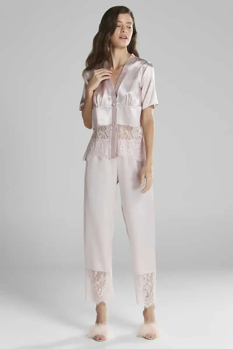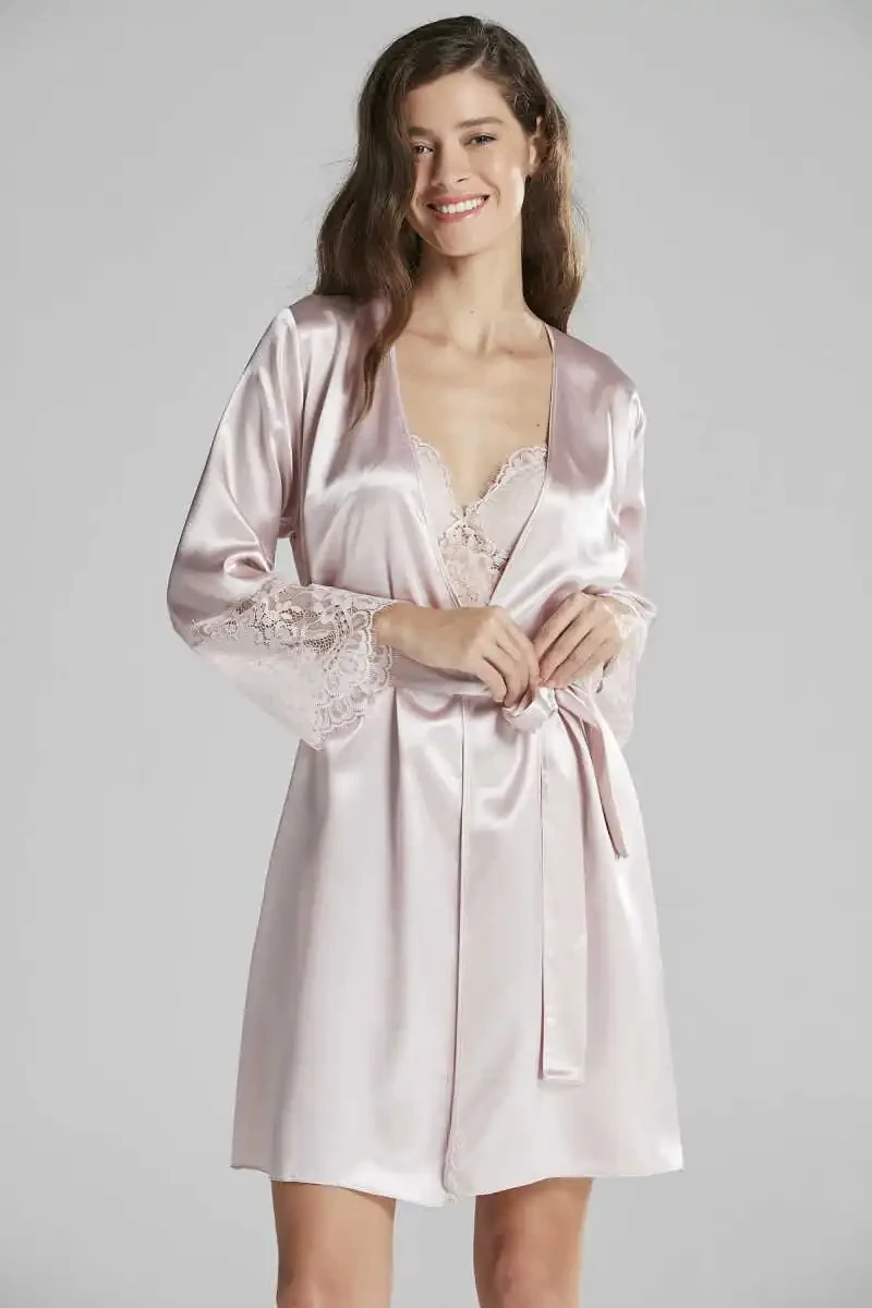 This satin nightgown robe pajama set, which captivates you with its dreamlike softness and elegance, will be an indispensable part of your bridal trousseau! This special set, offered in 6 different colors, caters to every taste and need. The elegant look and comfort of satin fabric provide a comfortable experience for every moment.