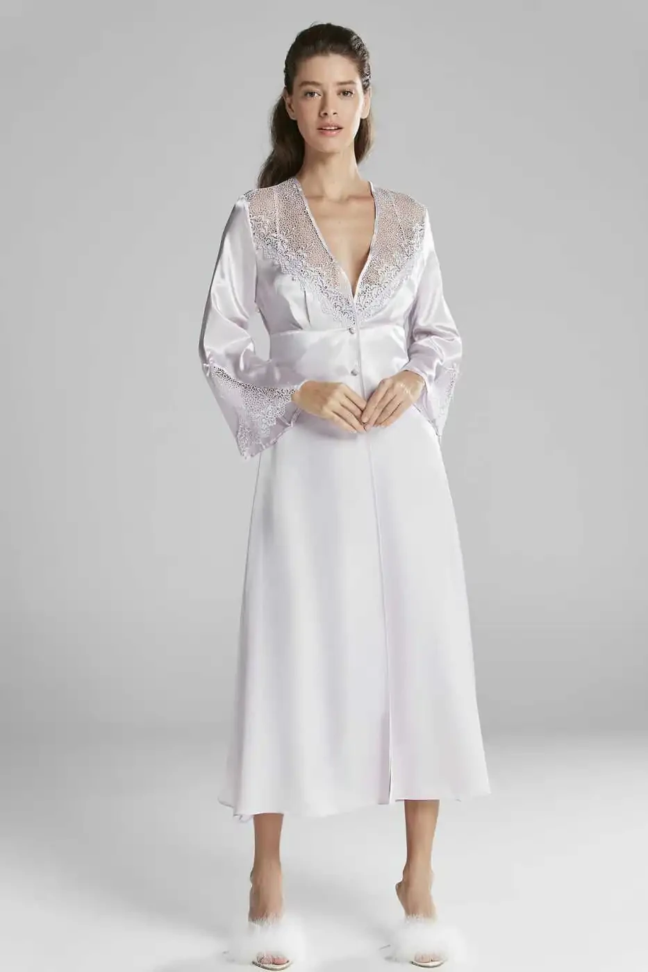 Available in 6 different colors and patterns, the set caters to every taste and style. An elegant and romantic nightgown, a comfortable and stylish robe, pajamas perfect for falling asleep, and shorts suitable for everyday use are designed to meet all your needs. Made from high quality satin fabric, the set is breathable and durable. It does not fade or wear out, making it a great option for long-term use.