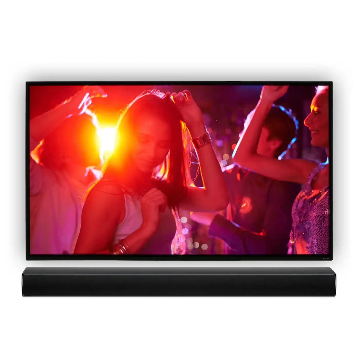 Разработанный с компактным 32-дюймовым профилем, этот саундбар легко помещается под телевизором или может быть установлен на стене. Его гладкий и изысканный вид добавит современный штрих к вашему домашнему декору. Кроме того, он обеспечивает универсальность подключения с входами HDMI (ARC), оптическим и коаксиальным для нескольких источников звука.