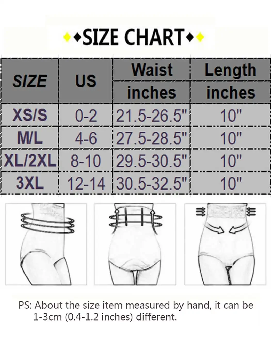 Beden Seçimi İçin Beden Tablosu: Beden XS/S: BEL ÖLÇÜSÜ: 21.5-26.5" (54.6-67.3 cm) Beden M/L: BEL ÖLÇÜSÜ: 27.5-28.5" (69.9-72.4 cm) Beden XL/2XL: BEL ÖLÇÜSÜ: 29.5-30.5" (74.9-77.5 cm) Beden 3XL: BEL ÖLÇÜSÜ: 30.5-32.5" (77.5-82.6 cm) Önemli İpuçları: 1. Makinede soğuk suda yıkayın, elde soğuk suda yıkanması ve asarak kurutulması önerilir. 2. Farklı monitör ve ışık efekti nedeniyle, ürünün gerçek rengi resimlerde gösterilen renkten biraz farklı olabilir. Teşekkür ederiz! Paket İçeriği: 1 X Kadın Şekillendirici Korse