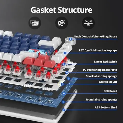 SbocKeeb 75 Percent Keyboard Gasket-Mounted with Sound Absorbing Pads, 82-Key Compact Wired RGB Mechanical Gaming Keyboard Hot-Swap Socket for Win, Blue Earth