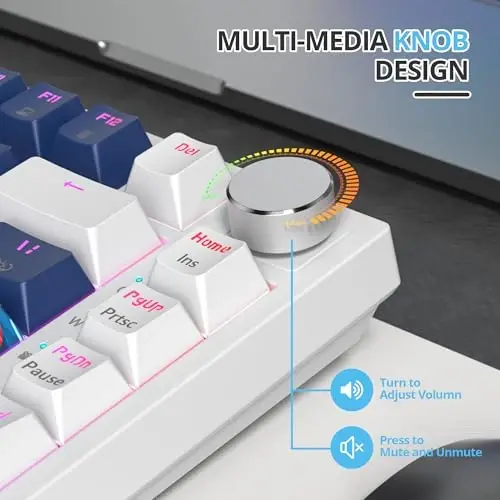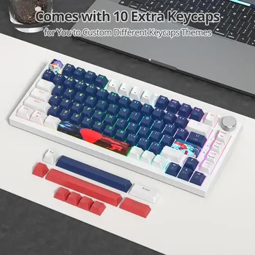 ★ Hot-Swappable Switches: Easily customize your keyboard without soldering. The hot-swappable feature allows you to switch out mechanical switches effortlessly, providing a tailo-red typing and cool gaming experience. ★ Premium PBT Keycaps: Equipped with high-quality PBT keycaps that resist oil and wear, ensuring a clean and durable surface that maintains its texture over time. ★ Gasket Mounted Design: The gasket-mounted structure 75 percent keyboard with Sound Absorbing Pads provides a softer and quieter typing experience, -reducing noise and delivering a cushioned feel for enhanced comfort during extended use. ★ Full Key Anti-Ghosting: Experience flawless performance with this aesthetic keyboard's full key anti-ghosting.This feature ensures every key press is registe-red accurately, even during intense gaming sessions, so you never miss a move. ★ Vibrant RGB Lighting with Customizable Software: Illuminate your setup with dynamic RGB lighting. Customize the colors and effects using the included software to match your style and preferences. The intuitive software also allows for macro programming and key remapping, giving you full control over your keyboard.