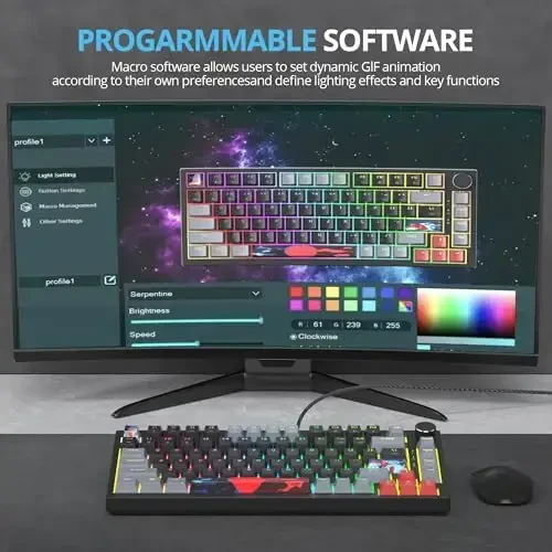 The SbocKeeb 75 Percent Keyboard is an ideal option for gamers and writers. It stands out with its high performance, customization options, and comfortable use. You can easily control all the features of your keyboard using the software that comes with the product. PBT keycaps remain like new even with long-term use. The gasket-mounted design and sound-absorbing pads provide a quiet working environment. Thanks to the hot-swappable switch sockets, you can find the one that suits you best by trying different switch types.