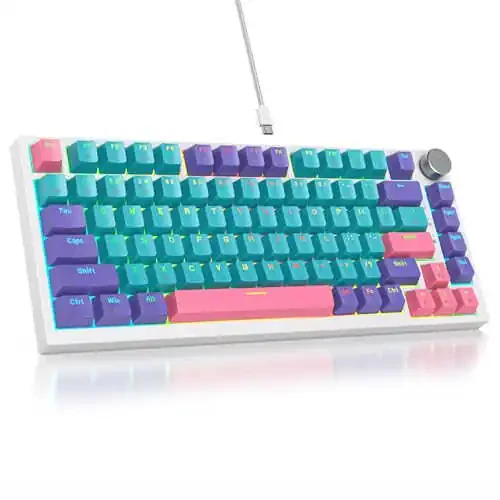 The SbocKeeb 75 Percent Keyboard is an excellent choice for gamers, writers, and designers. Designed with gasket mounting and sound absorbing pads, the keyboard provides a quiet and comfortable typing experience. Its 82-key compact design saves more space on your desktop.
