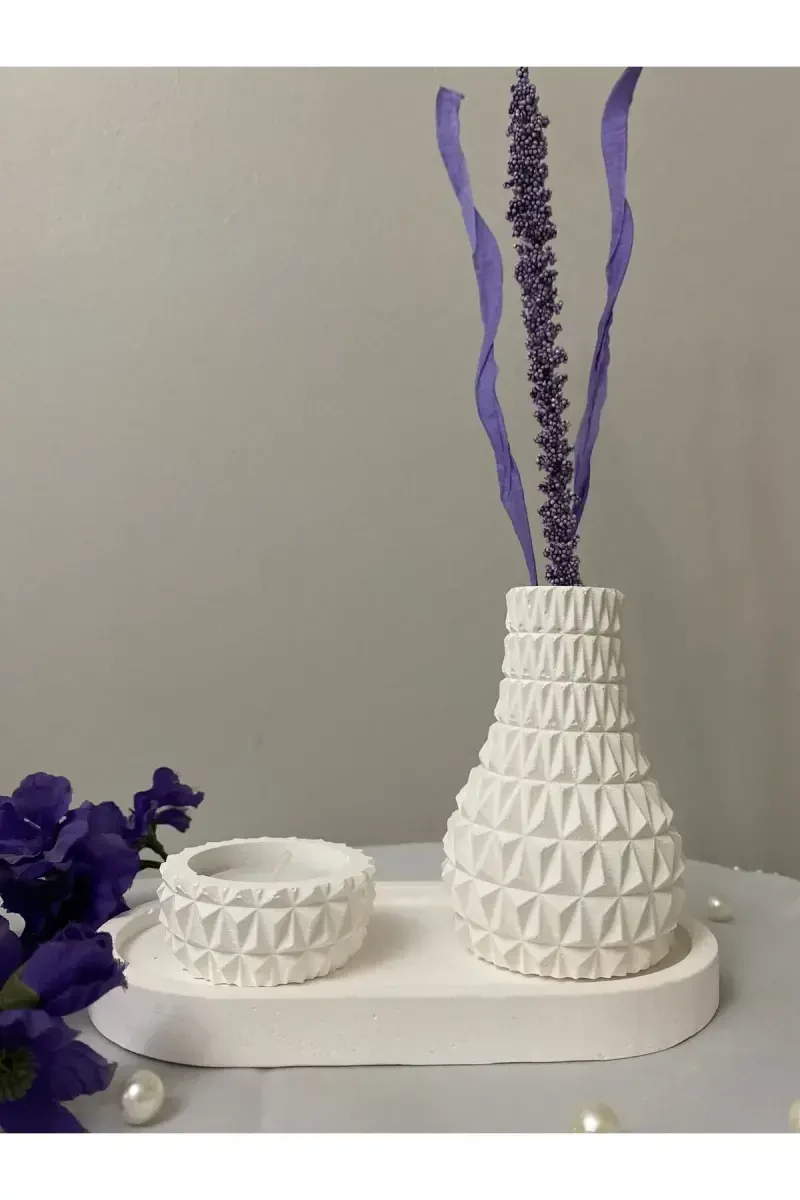 Add a sophisticated touch to your home with the Scandinavian Style Diamond Patterned Minimalist Vase Tray Candlestick Presentation and Accessory Set. This special set is designed to beautify your living spaces by combining modern design and functionality. This stylish decoration set, consisting of a vase, round tray, and tealight candle holder, will be an indispensable part of your home decoration. The vase attracts attention with its elegant diamond pattern, while the round tray allows you to display your presentations in a stylish way. The tealight candle holder adds a warm and inviting ambiance to the environment. This set stands out not only with its aesthetic appearance but also with its versatile usage features. You can add vitality to your home by using the vase for your flowers, and you can use the tray to display your coffee presentations or decorative objects. You can organize romantic dinners with the tealight candle holder or create a dim atmosphere when you just want to relax. The entire set is made of high-quality materials and is long-lasting and durable. Diamond-patterned surfaces perfectly reflect light, adding sparkle and elegance to the environment. This set is an ideal choice for those who care about home decoration. It adapts to all kinds of decoration styles with the simplicity and modern lines of the Scandinavian style. It is also a great option for those who are shopping for dowry, newlyweds, or those who want to give a special gift to their loved ones. It can also be considered as a bathroom decoration, a coat rack accessory, or a different gift idea. Remember, this set does not include flowers and tealight candles. You can add a personal touch to your home by completing the set with flowers and candles that suit your taste. The vase, which you can also use as a room fragrance, allows you to spread a pleasant scent in your home with your favorite fragrance and sticks. Experience both elegance and functionality in your home with this set.