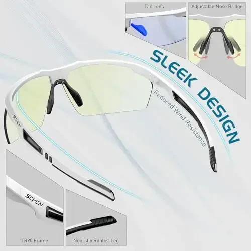 SCVCN Photochromic Sport Sunglasses are a product with superior features designed for outdoor sports and activities. These glasses are suitable for both men and women and stand out with features such as UV400 protection, adjustable nose pads, polycarbonate lenses, and a TR90 frame. Thanks to photochromic lens technology, it automatically changes color depending on the intensity of sunlight, thus providing clear and comfortable vision in different lighting conditions. This feature offers a great advantage especially for activities such as cycling, running, and fishing, which are carried out in constantly changing light conditions. The UV400 protection of the glasses provides full protection against harmful UVA and UVB rays, protecting your eye health at the highest level. Adjustable nose pads provide comfort even during long-term use by adapting to different face shapes, and thanks to its non-slip texture, it stays stable even when exercising. Polycarbonate lenses are known for their high impact resistance and scratch resistance, and they also stand out with their lightness and clear vision. The TR90 frame is much lighter, more flexible and durable than traditional plastic frames, which ensures the glasses have a long life. SCVCN Photochromic Sport Sunglasses are not just sunglasses, but also a comfortable and stylish accessory that protects your eyes from the harmful effects of the sun. Whether you are cycling, running or fishing, these glasses will always offer you the best vision and protection. It is an ideal choice to increase your performance and protect your eye health in your outdoor activities. Enjoy the sun while keeping your eyes safe with SCVCN Photochromic Sport Sunglasses. These glasses are an excellent choice for various sports and outdoor activities, offering versatile use. Thanks to its advanced technology and ergonomic design, it accompanies you in all kinds of weather conditions and activities.