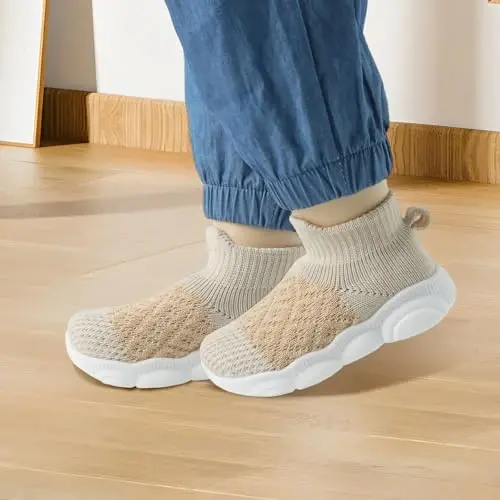 SEBELLST Chaqaloq o'g'il qiz krossovkalari Go'dak ilk qadam poyabzallari Sirpanmaydigan yopiq chaqaloq krossovkalari Yumshoq taglik Sirpanmaydigan paxta to'r Nafas oladigan yengil chaqaloq poyabzallari