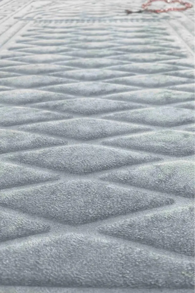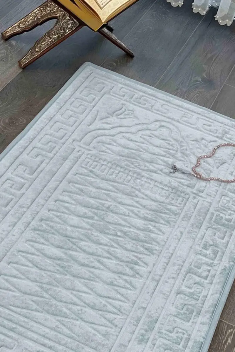 Seccade Diz Ağrıtmayan Kadife Kaymaz Taban Kabartmalı, Işlemeli, Özel Yumuşak Taban %100 Pamuk-Turkuaz