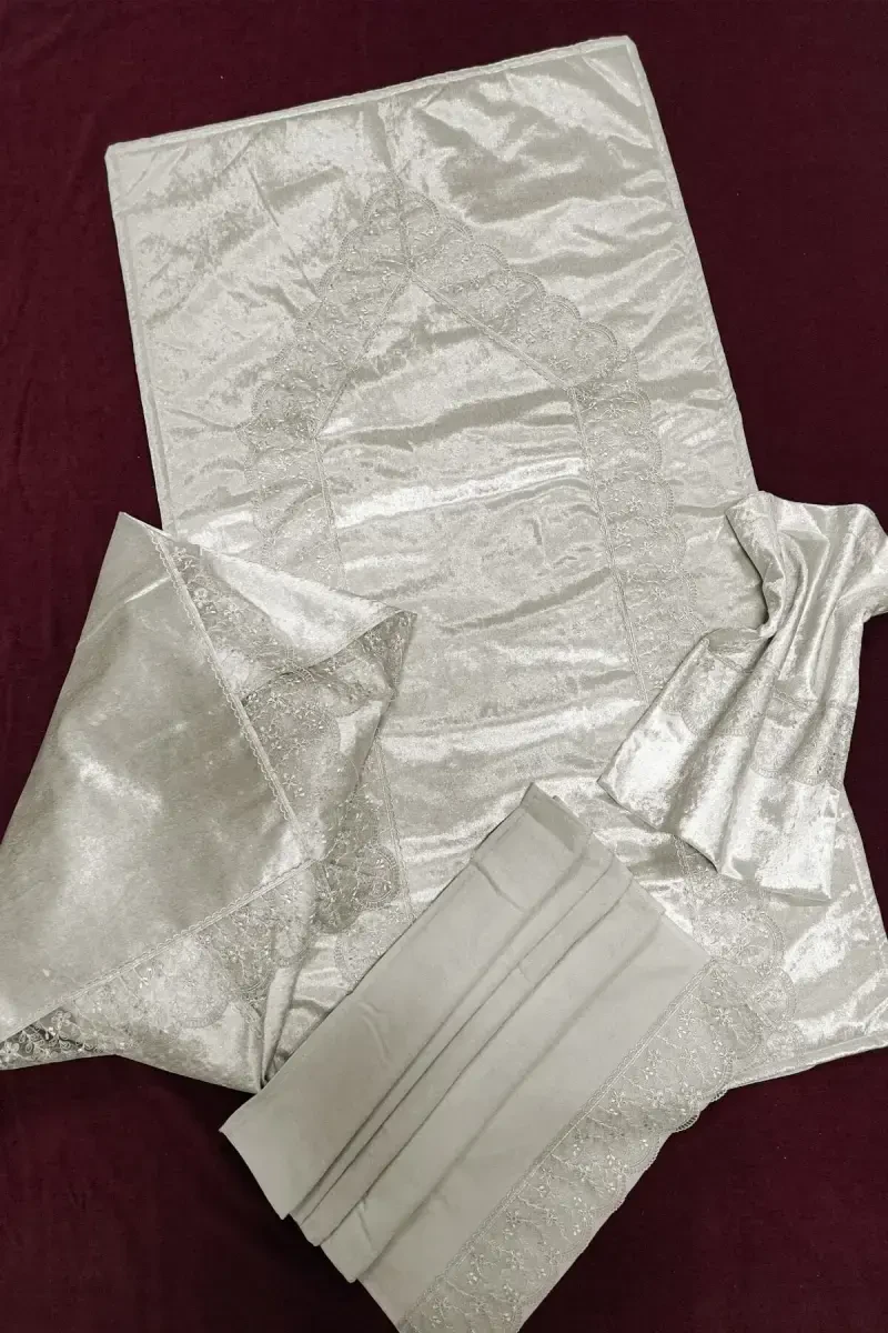 The 4-piece set can be preferred for both personal use and as a gift. It includes 1 prayer rug, 1 towel, 1 rosary, and 1 velvet bag. This set allows you to perform your prayers in a comfortable and peaceful manner.