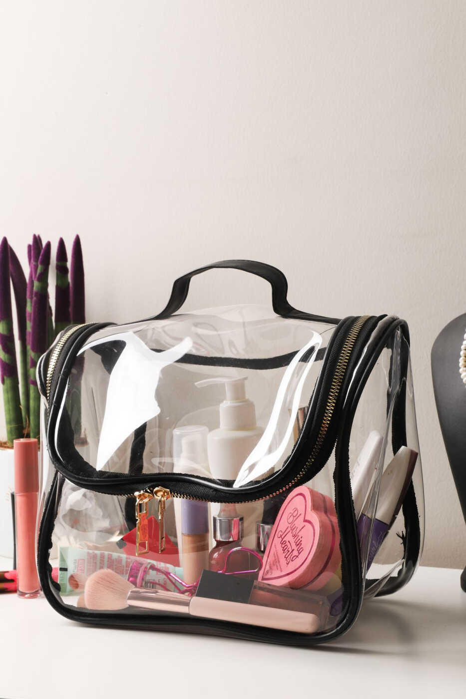 Seyahatlerinizi kolaylaştırın ve tarzınızı yansıtın! Şeffaf büyük boy seyahat makyaj çantamız, kozmetik ürünlerinizi, kişisel bakım eşyalarınızı ve seyahat esnasında ihtiyaç duyduğunuz diğer eşyalarınızı düzenli ve güvenli bir şekilde taşımanız için ideal bir çözümdür.