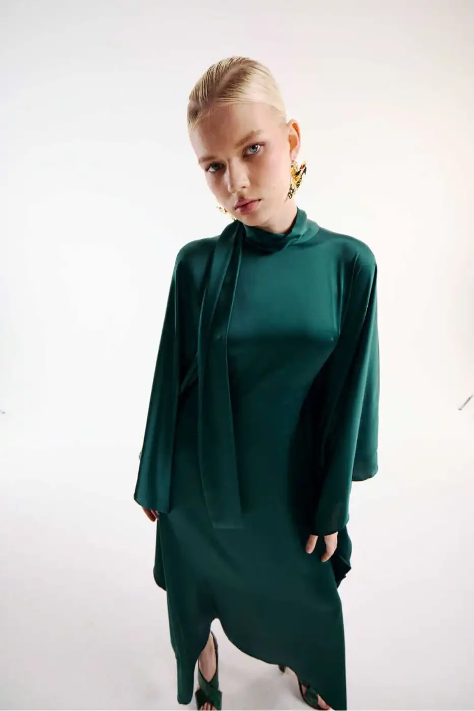 Платье из атласа с завязками на шее, изготовленное из мягкой и блестящей атласной ткани, - идеальный выбор для создания изящного и элегантного образа. Завязки на шее придают платью изысканности, а также обеспечивают удобство носки. Утиный зеленый цвет пробуждает ощущение естественной элегантности и свежести.