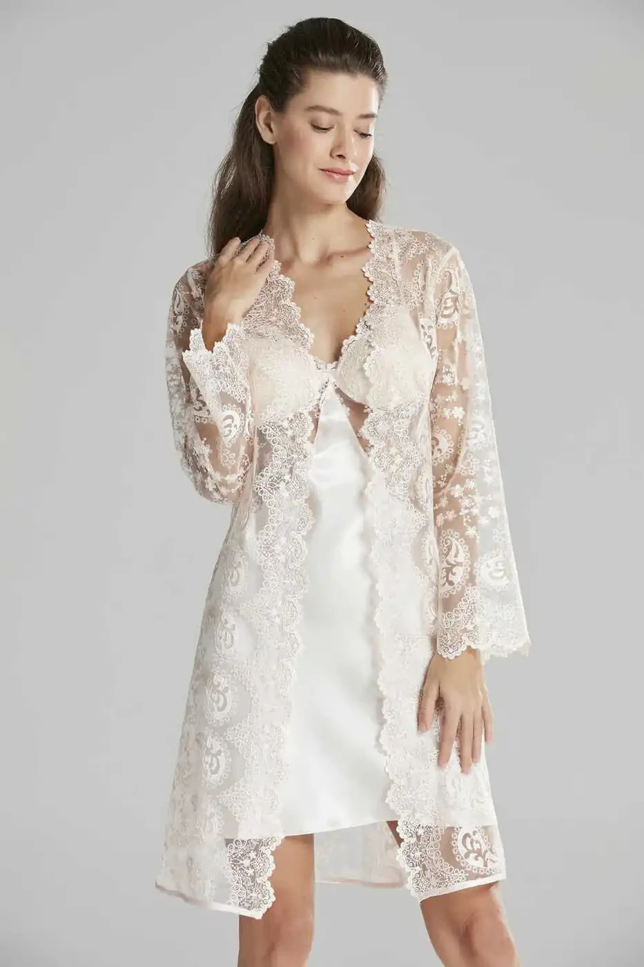 Шёлковый ночной халат пижама шорты комплект 6-местный свадебный набор приданого - 6225 - также является идеальным вариантом в качестве свадебного или помолвочного подарка. Представленный в элегантной подарочной коробке, этот комплект станет незабываемым подарком, который порадует ваших близких.