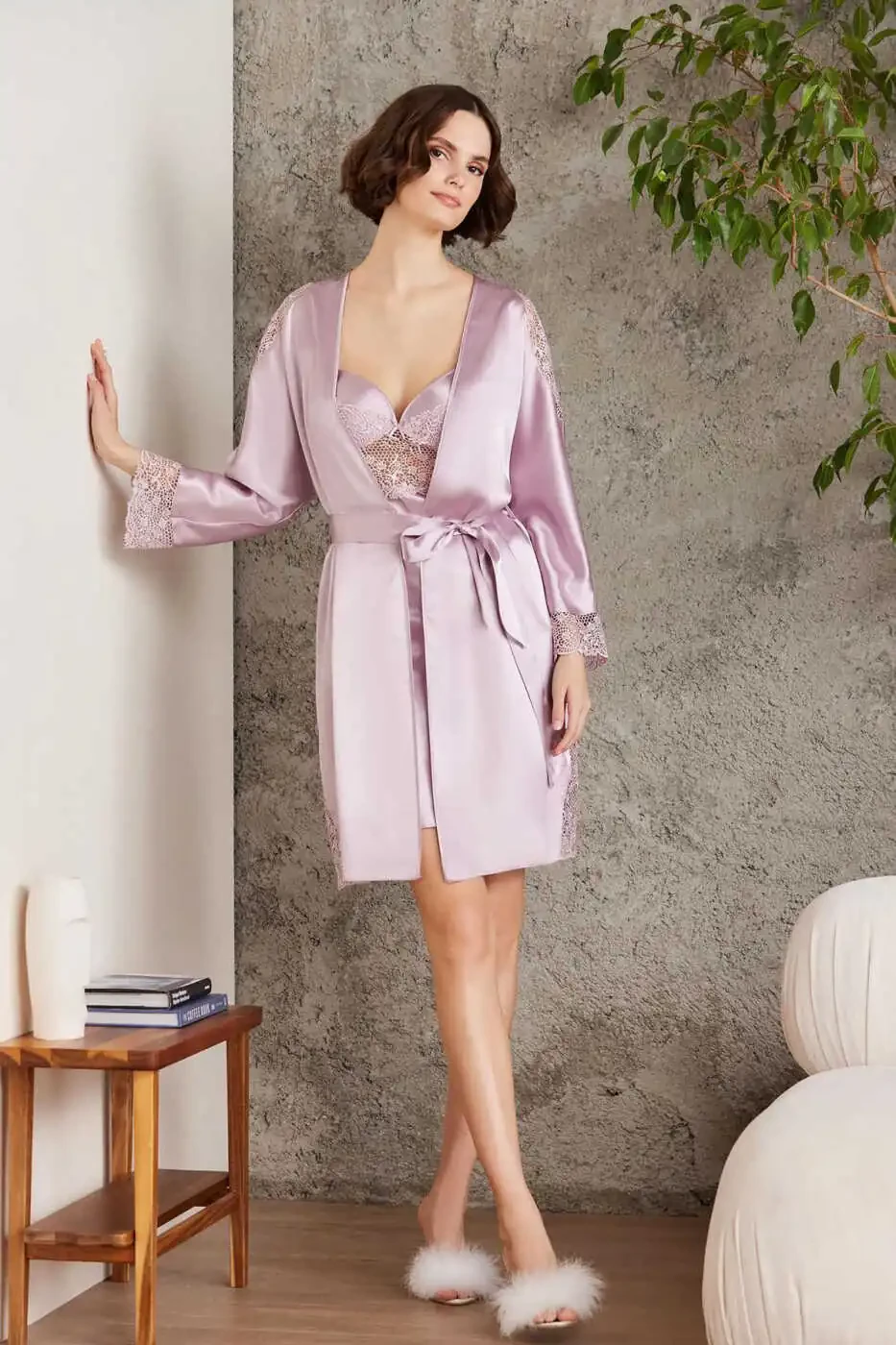 Комплект из 6 предметов - сатиновая ночная рубашка, халат, пижамные шорты - Подарочный набор для невесты - 6000