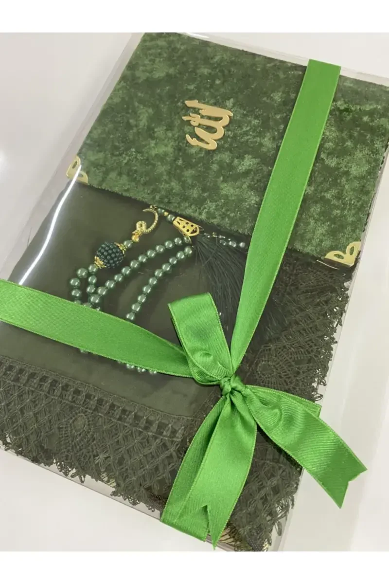 Seplik to‘plami: Igna bilan o‘yilgan namoz o‘rgatuvchi, Yosin, Tasbeh - Yashil | Kelin bo‘chasi sovg‘asi