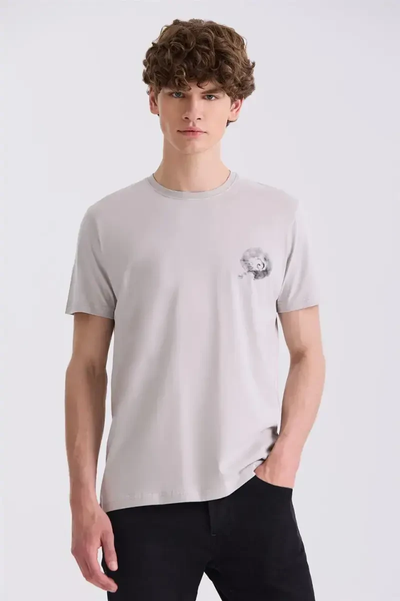 Серая облегающая футболка с круглым вырезом: сочетание стиля и комфорта