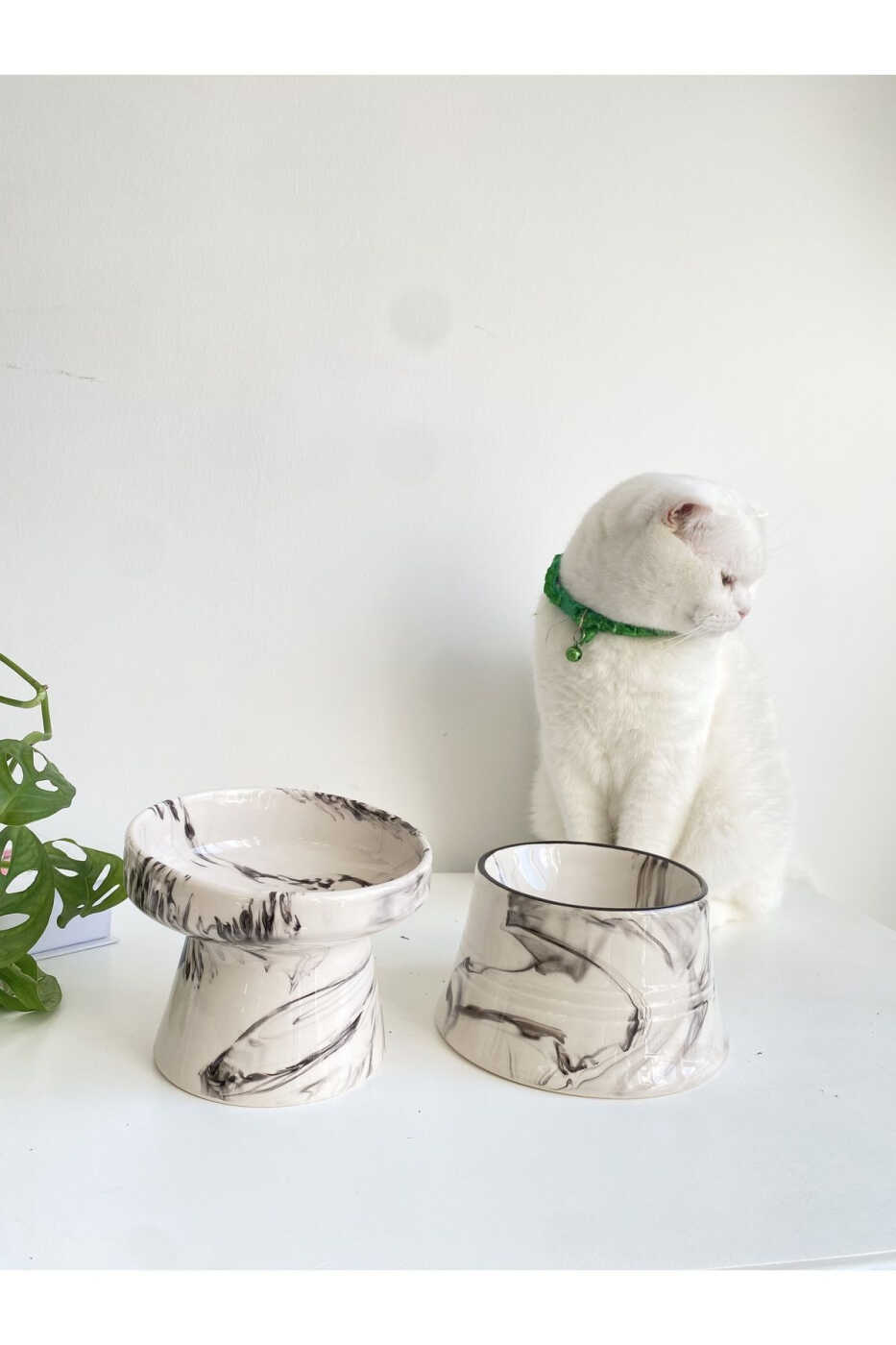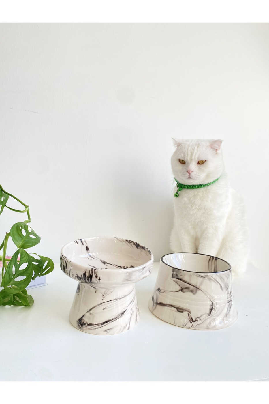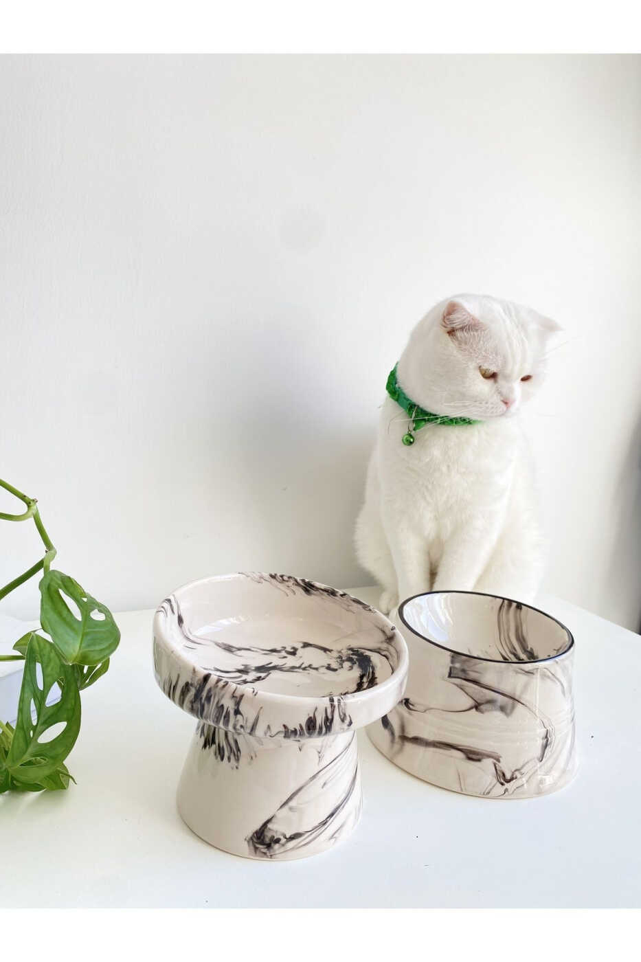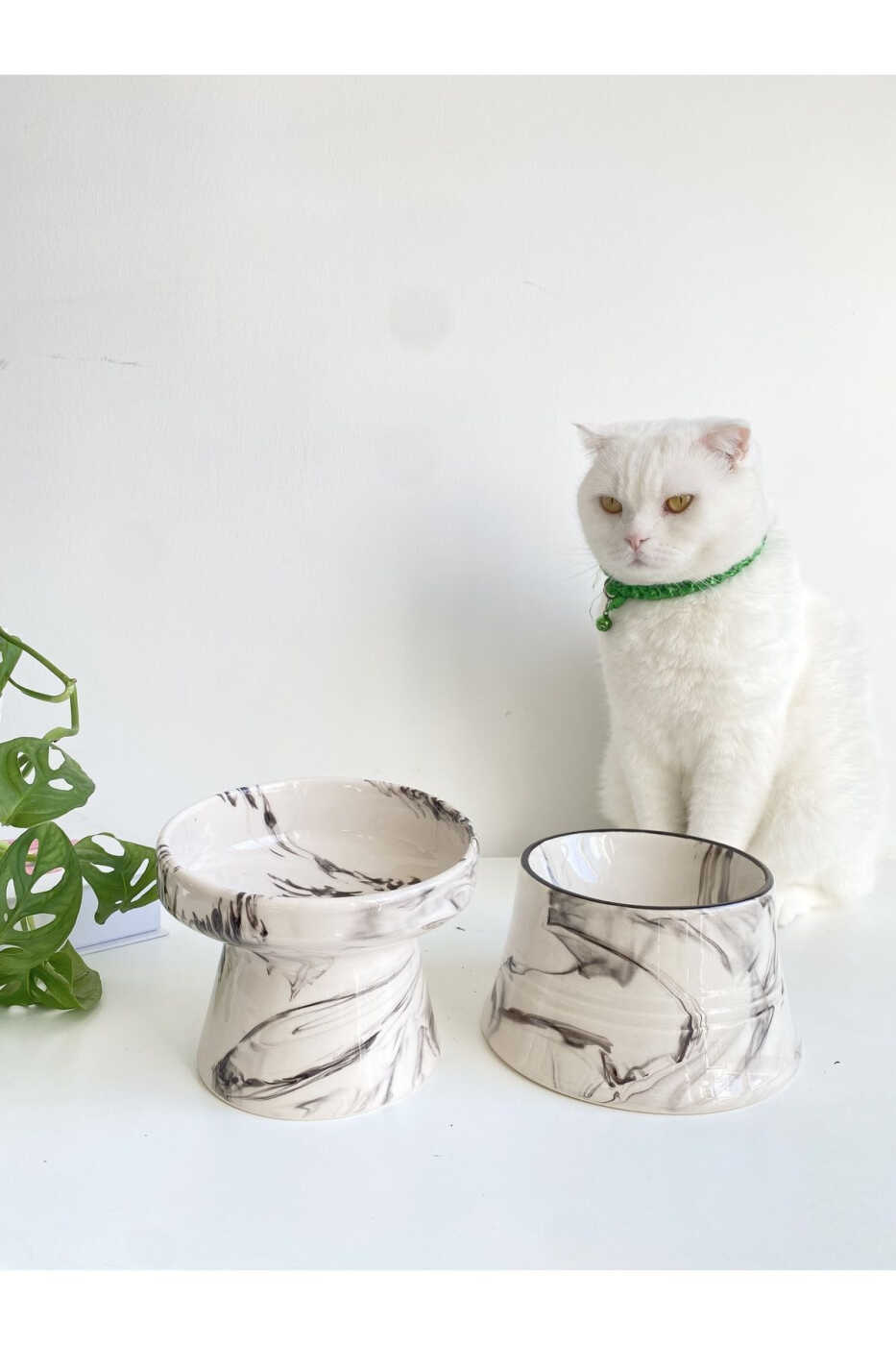Seramik Kedi Ve Köpek Mama Su Kabı (SİYAH BEYAZ & COLORFUL MOON SİYAH ÇİZGİLİ - EBRU DESEN- 2'Lİ)