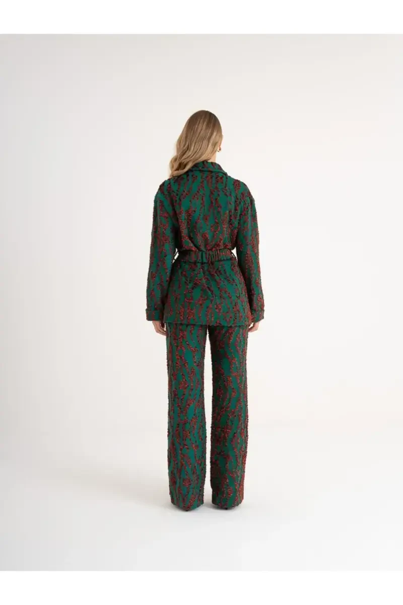 Ayollar uchun Serpil yashil kostyumi, ayollar uchun kostyum, qulay kostyum, zamonaviy kostyum, geometrik naqshlari bo'lgan kostyum