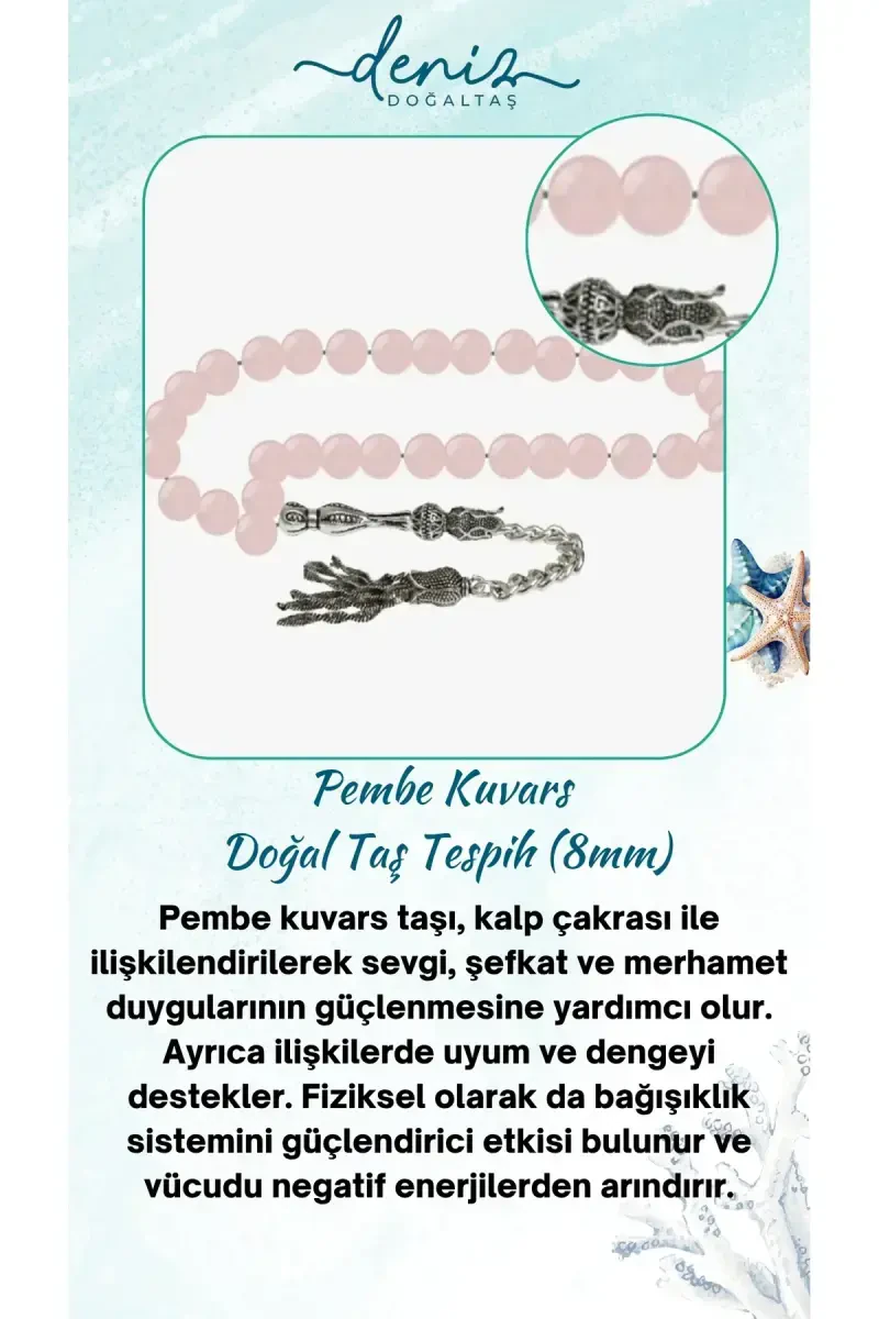 Сертифицированные четки из натурального розового кварца 8 мм - tesbihrenk29 — это особый аксессуар, сочетающий в себе элегантность и исцеление. Эти четки состоят из тщательно отобранных камней розового кварца круглого сечения диаметром 8 мм. Розовый кварц на протяжении веков считался символом любви, сострадания и эмоционального исцеления. Эти четки станут стильным аксессуаром, который будет сопровождать вас в повседневной жизни, а также коснутся вашей жизни позитивной энергией, которую предлагает розовый кварц. Каждая бусина тщательно обработана и собрана вместе. Эти четки отличаются не только эстетичным внешним видом, но и долговечностью. Наличие сертификата гарантирует подлинность и качество камней и повышает их духовную ценность. Эти четки — не просто аксессуар, это инструмент, который питает вашу душу и поддерживает внутренний мир.