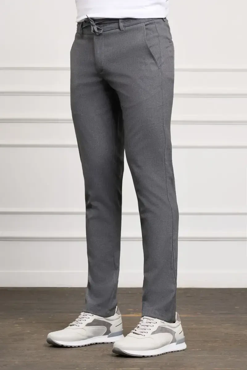 Gri Slim Fit Dar Kesim Yan Cep Bağcıklı Jogger Erkek Pantolon, modern erkeğin gardırobunda olması gereken şık ve rahat bir seçenektir. Slim fit dar kesimi, vücuda oturan yapısıyla hem şık bir görünüm sunar hem de hareket özgürlüğünüzü kısıtlamaz. Normal bel yüksekliği, gün boyu konforlu bir kullanım deneyimi sağlarken, örme kumaş yapısı esneklik ve rahatlık sunar. Bu jogger pantolon, günlük kullanım için idealdir ve regular boy tasarımı sayesinde her ortama kolayca uyum sağlar. %97 pamuk içeriği cildinizin nefes almasını sağlarken, %3 likra esnekliği hareketlerinizi özgürleştirir. Bağcıklı kemer detayı, pantolonu kendi bedeninize göre ayarlama imkanı sunarak kişisel konforunuzu ön planda tutar. Dört adet cep, telefon, cüzdan veya anahtar gibi eşyalarınızı güvenle taşıyabileceğiniz pratik depolama alanları sunar. Astarsız yapısı, pantolonu hafif ve serin tutarak özellikle sıcak havalarda tercih sebebi yapar. Polyester materyali, pantolonun dayanıklılığını artırarak uzun ömürlü bir kullanım sunar. Baskısız düz deseni, zamansız bir stil oluşturmanıza yardımcı olur ve her tür üst giyimle kolayca kombinlenebilir. Gri rengi, çok yönlü bir kullanım sunarak farklı renk ve desenlerdeki kıyafetlerinizle uyum sağlar. İster spor bir tişörtle, ister şık bir gömlekle kombinleyin, bu pantolon her zaman stilinizi tamamlayacaktır. Her mevsim giyebileceğiniz bu jogger pantolon, gardırobunuzun vazgeçilmez bir parçası olmaya aday. Modazone kalitesiyle sunulan bu ürün, hem rahatlığı hem de şıklığı bir arada arayan erkekler için mükemmel bir seçimdir. Günlük aktivitelerinizde, hafta sonu gezilerinizde veya arkadaşlarınızla buluşurken her zaman rahat ve şık olmanızı sağlar. Esnek kumaşı sayesinde gün boyu hareket özgürlüğünüzü korurken, slim fit kesimi ile de modern bir görünüm elde edersiniz. Gri renginin sunduğu çok yönlülük sayesinde farklı stiller yaratabilir ve kendi tarzınızı yansıtabilirsiniz.