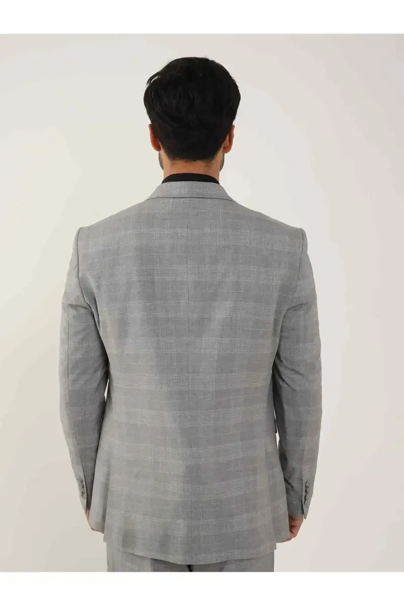Сочетающий в себе стиль и элегантность, серый мужской костюм Slim Fit в клетку с однобортным воротником поможет вам отразить свой стиль по особым случаям и в деловой жизни. Этот костюм, идеально сидящий на вашем теле благодаря своему приталенному крою, создает современный и стильный образ. Клетка добавляет современный штрих к классическому стилю, а однобортный воротник придает шик вашему образу.