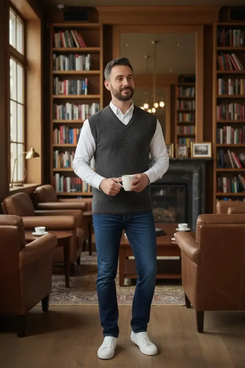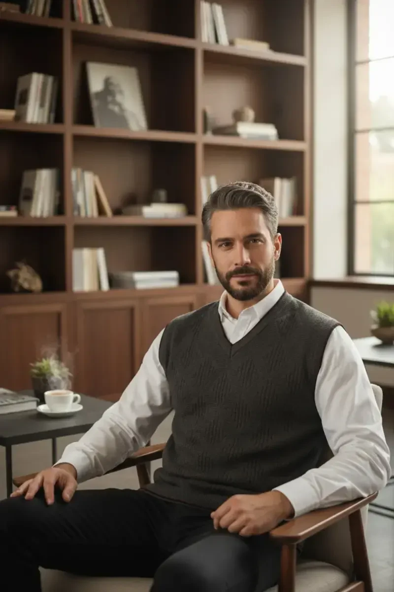 Мужской трикотажный свитер с V-образным вырезом | С косами, не скатывается