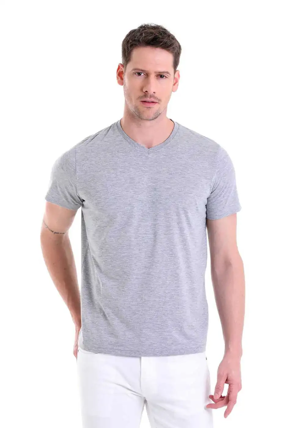 Идеальное сочетание комфорта и стиля - серая футболка свободного кроя с V-образным вырезом из 100% хлопка, станет незаменимой частью вашего повседневного стиля. Подходящая для повседневной жизни, офиса, приятного вечера или спортивных мероприятий, эта футболка привлекает внимание своим классическим дизайном и комфортной тканью. Изготовленная из высококачественного 100% хлопка, футболка отличается мягкой текстурой и дышащей структурой, бережно относясь к вашей коже. Детали V-образного выреза придают современный и стильный вид, а свободный крой подходит для всех типов фигур. Аккуратные швы и идеальный крой обеспечивают сохранение формы на протяжении длительного времени и предотвращают деформацию после стирки. Природно мягкая ткань из 100% хлопка обеспечит комфорт на весь день. Нейтральный и стильный оттенок серого сочетается с любым цветовым решением. Эта футболка - обязательная вещь в гардеробе каждого, кто ценит стиль, дополнит ваш повседневный образ и всегда обеспечит привлекательный вид.