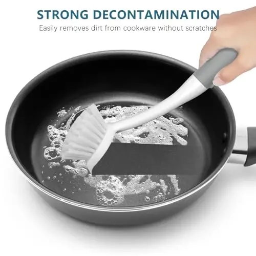 dish brush, long-handled brush, kitchen dishes, bottle brush, glass brush, pot brush, pan brush, brush with scraper, deep cleaning, gray brush