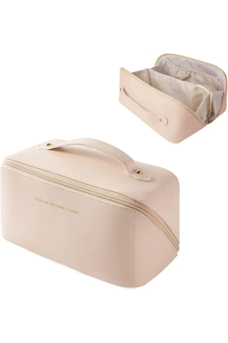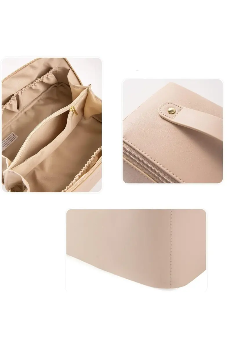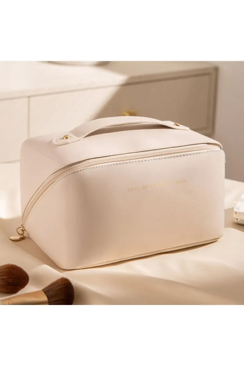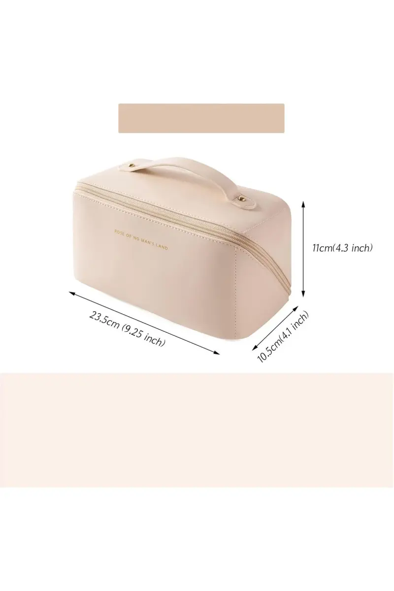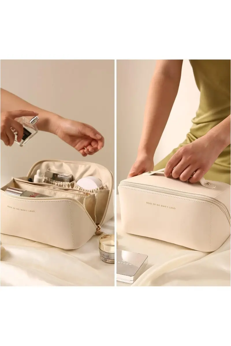 Seyahat Kozmetik Taşıma Çantası Su Geçirmez Deri Makyaj Malzeme Düzenleyici Çanta-BEJ
