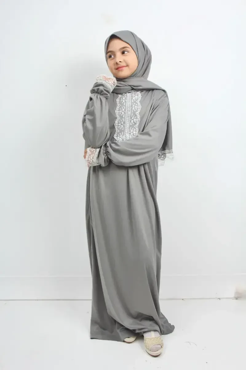 Нарядное намазное платье средней длины для девочек на все сезоны разработано в стиле фераче, который понравится молодым девушкам. Благодаря тонкой и легкой ткани оно не вызывает потоотделения, поэтому ваши дети могут совершать намаз в мире. Серый цвет придает одежде современный и элегантный вид, а средняя длина не ограничивает свободу движений. Это специальное намазное платье помогает вашим детям выглядеть стильно и комфортно выполнять свои богослужения. Это платье, которое можно носить как в повседневной жизни, так и в особых случаях, станет незаменимой частью вашего гардероба. Благодаря дышащей ткани оно гарантирует комфорт даже при длительном использовании. Кроме того, оно практично в использовании благодаря легко гладящейся структуре. Это идеальный выбор для тех, кто хочет поддержать духовность своих дочерей, не жертвуя их стилем.