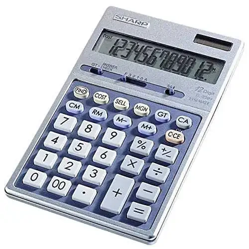 Sharp EL339HB Yarı Masaüstü Metal Üst 12 Haneli Hesap Makinesi ile hesaplamalarınız bir üst seviyeye! Bu gelişmiş hesap makinesi, ekstra büyük 12 haneli sıvı kristal ekranda net bir görüntü sunar. Dört tuşlu bellek, toplam, maliyet/satış/kar, yüzde ve işaret değişikliği tuşları ile donatılan bu hesap makinesi, tüm matematiksel işlemlerinizi kolayca halleder. Düşük gürültülü klavyesi, metal kasası ve ayarlanabilir standı ile kullanımı oldukça rahattır.