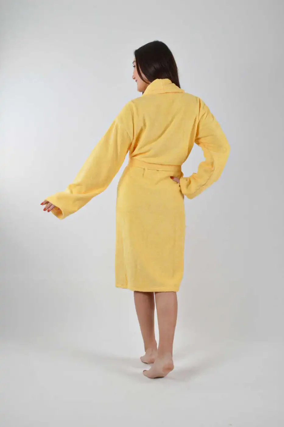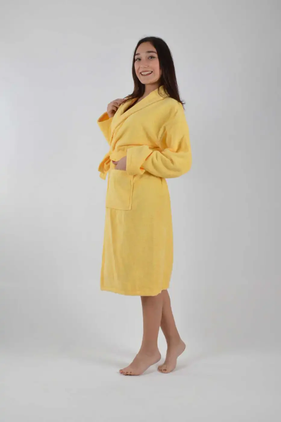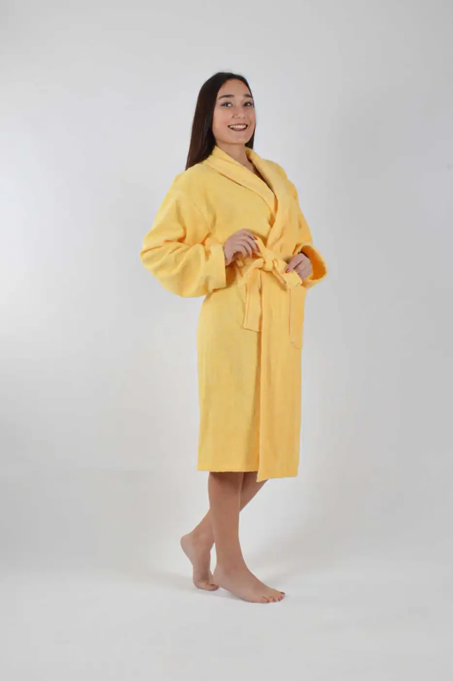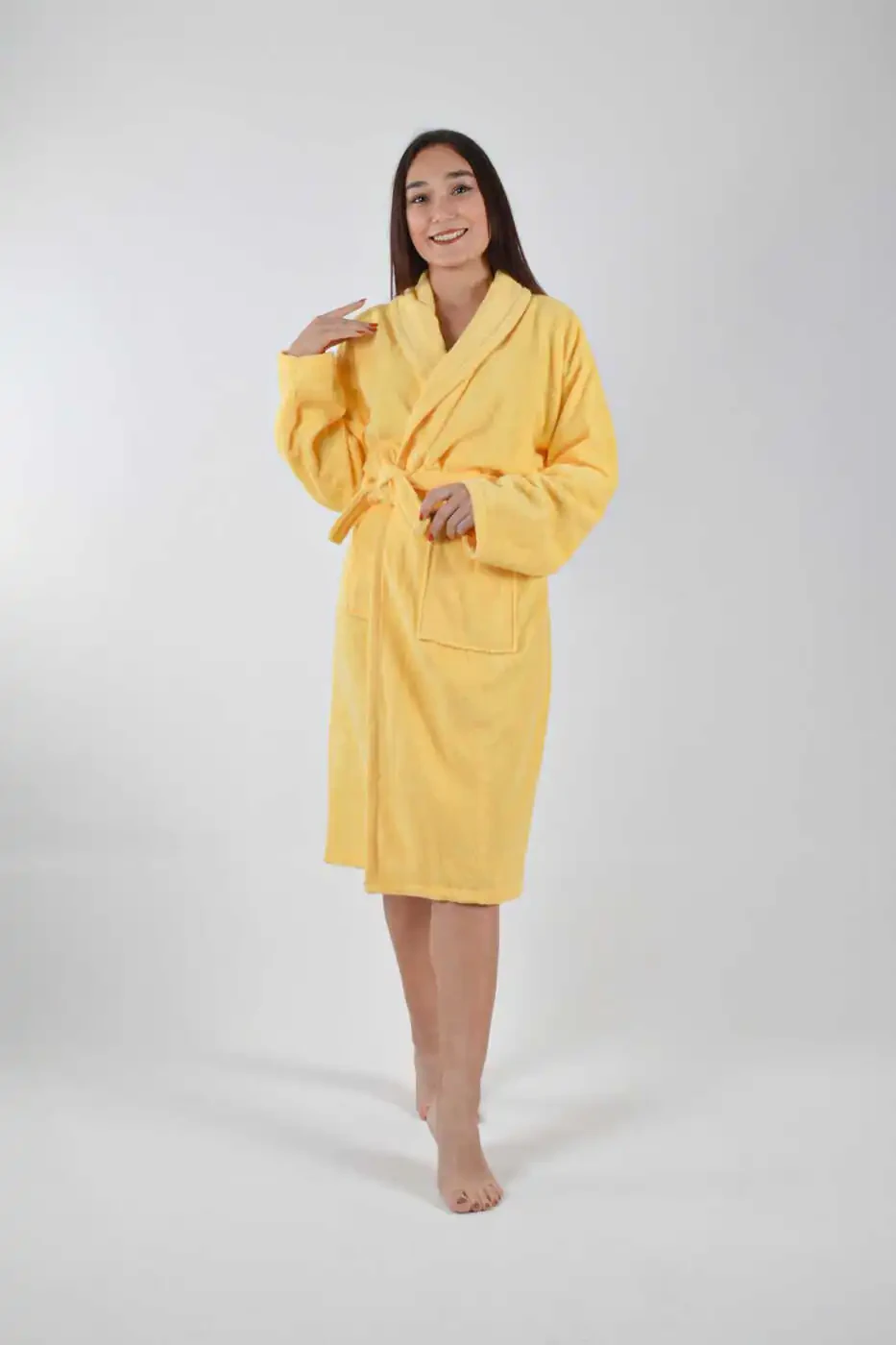 The Shawl Collar Bathrobe is specially designed for your comfort and convenience after bathing. Made of high-quality 100% cotton yarn, this bathrobe provides a soft touch to your skin and quickly dries your skin thanks to its superior water absorption feature. While adding joy and vitality to your bathroom with the energy of yellow color, it also appeals to your taste with its stylish design. The standard size is suitable for everyone to use by adapting to different body types. The hooded design of the bathrobe helps you dry your hair quickly, while its large pockets offer convenience. With its long-lasting and durable structure, the Shawl Collar Bathrobe will accompany you for many years. It is also easy to use as it can be easily washed and dried. Pamper yourself with the Shawl Collar Bathrobe, which will complete your after-bath pleasure and offer a warm and comfortable experience. While relieving the tiredness of the day, relax with its soft texture and start the day energetically with the energy of yellow color. The Shawl Collar Bathrobe is not just a bathrobe, but also a lifestyle. It is one of the most special and useful gifts you can buy for yourself or your loved ones. Choose the Shawl Collar Bathrobe to turn your bath routine into a luxurious experience. This bathrobe, which offers the same freshness and comfort in every use, will be an indispensable part of your bathroom. With its skin-friendly, environmentally friendly and long-lasting structure, the Shawl Collar Bathrobe considers the health of both you and your loved ones. While relaxing with its soft texture, it also gives energy with its vibrant color. Multiply your after-bath pleasure with the Shawl Collar Bathrobe and make every day special.