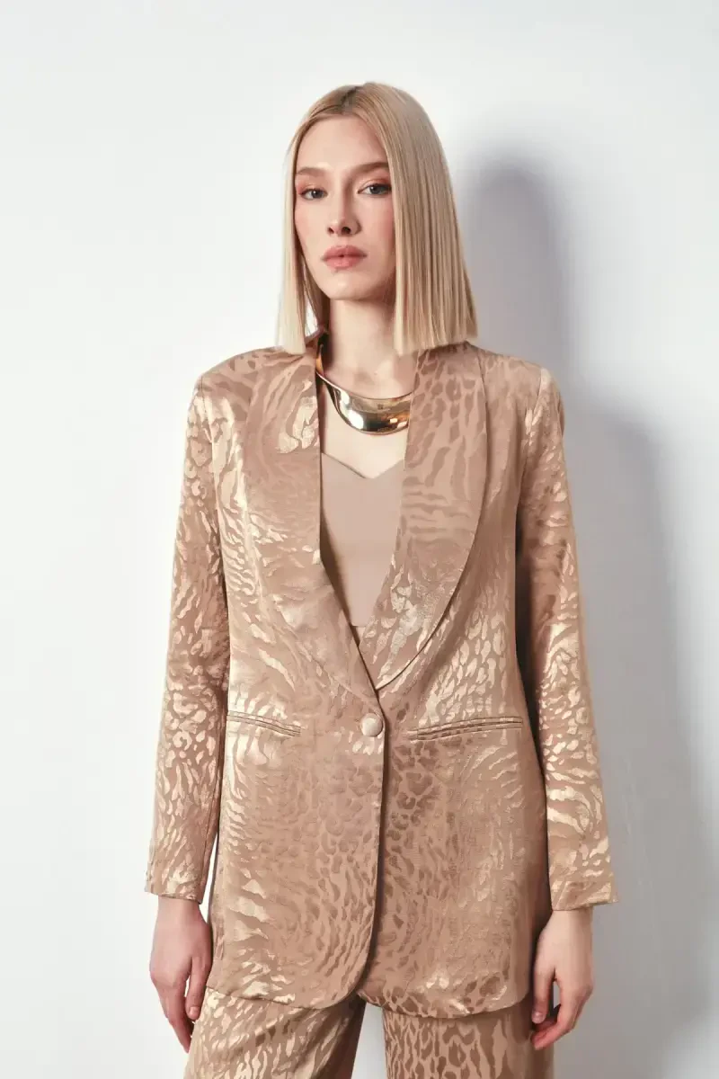 Combining style and elegance, the Shawl Collar Patterned Jacket is ready to become an indispensable part of your wardrobe. The mink color offers timeless elegance, while the shawl collar detail adds a sophisticated touch. Made from soft and quality fabric, the jacket is an option you can wear comfortably in any environment.