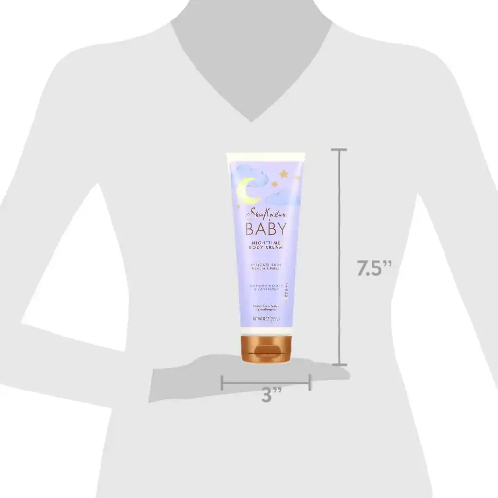 SheaMoisture Baby Nighttime Body Cream Manuka Balı va Lavanda, 8 oz mahsuloti tun tinchlantiruvchi kechki terini parvarish qilish rejimini yaratadi. Ushbu namlovchi tana krem bilan chaqalog'ingizning nozik terisini boqing va himoya qiling. O'simlik moylar, Manuka Balı va tinchlantiruvchi lavanda hidi aralashtirilgan ushbu tana krem formulası chaqalog'ingiz terisini oziqlantirib, uni teginishga yanada yumshoq qiladi. Bu sizningiz tun tinchlantiruvchi rejimingizga mukammal qo'shimcha hisoblanadi. SheaMoisture Baby Manuka Honey & Lavender Tana Kremini chaqalog'ingizni cho'miltirgandan so'ng uning terisiga surting. Tinchlantiruvchi va tinchlantiruvchi massaj uchun a'lo. Parabenlar, ftalatlar, mineral moylar, petrolatum va hayvonlar ustida sinovlar yo'q. Barqaror ishlab chiqarilgan va shafqatsizlarcha emas.